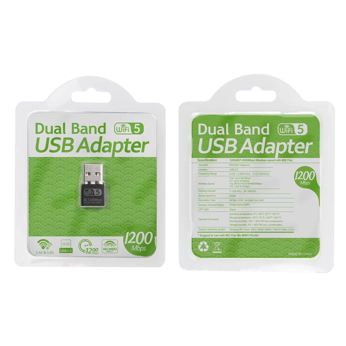 Q: What speeds can I expect from the USB WiFi Adapter?A: The USB WiFi Adapter supports dual-band frequencies, offering maximum speeds of up to 5GHz at 866Mbps and 2.4GHz at 300Mbps, making it ideal for online gaming and HD video streaming.