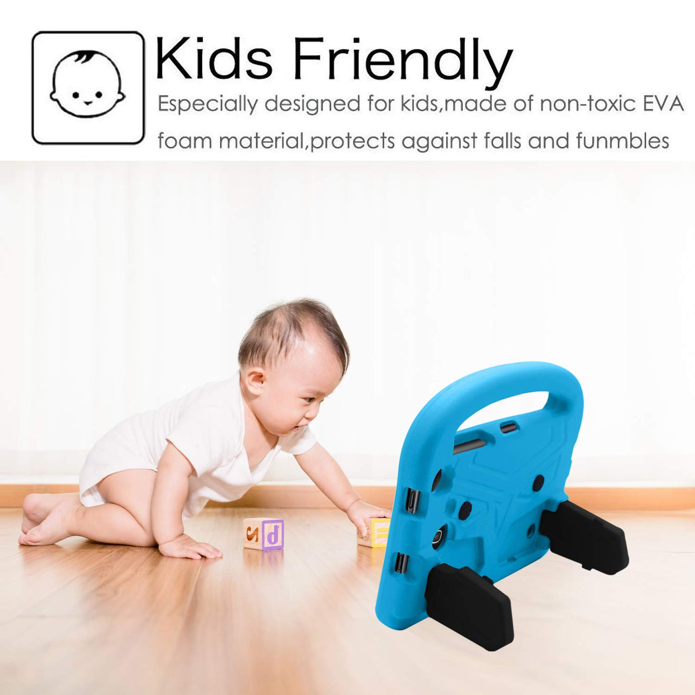 Q: What materials are used in the UUcovers Kids Case?A: The UUcovers Kids Case is made from high-quality, non-toxic Ethylene Vinyl Acetate (EVA) and rubber materials, providing excellent shock absorption, skid resistance, and anti-scratch protection for your tablet.