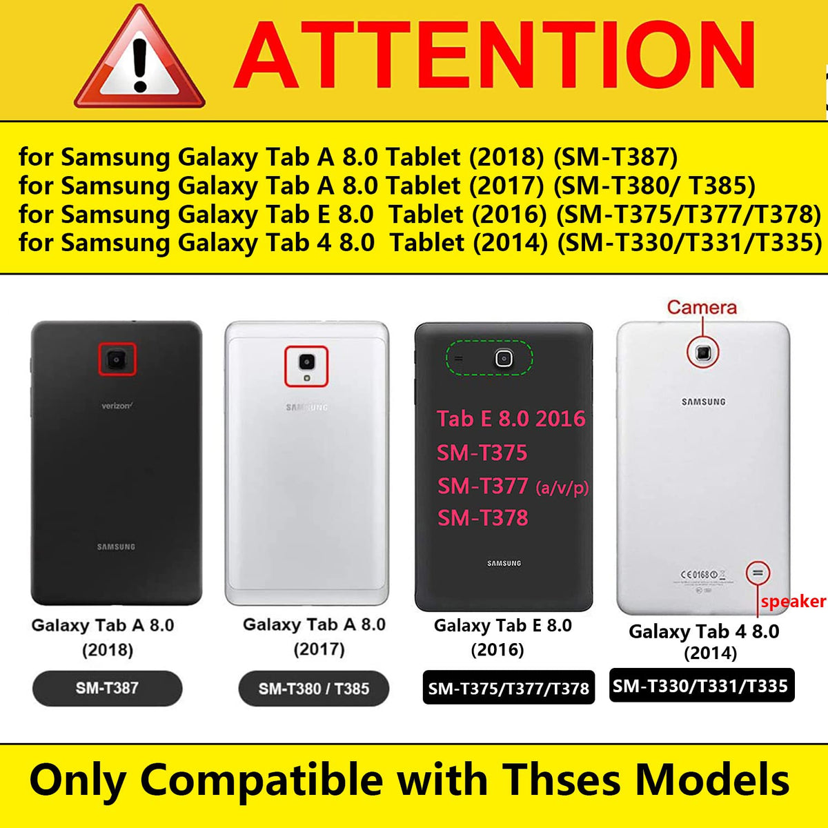 How Does Uucovers Case Covers Protect Your Tablet? Compatible Model: For Samsung Galaxy Tab A 8.0 Inch Tablet (2018 Release) (Sm-T387); For Samsung Galaxy Tab A 8.0 Inch Tablet (2017 Release) (Sm-T380/ Sm-T385); For Samsung Galaxy Tab E 8.0 Inch Tablet (2016 Release) (Sm-T375/ T377/ T378/ T377A/ T377V/ T377P); For Samsung Galaxy Tab 4 8.0 Inch Tablet (2014 Release) (Sm-T330/ T331/ T335); Not Compatible With Other Tablet Models. Uucovers Product Features: 1. Material: Made Of High Quality Non-Toxic Dense Silicone & Rubber Material With Rugged Frame Surface. Provides Extra Shock-Absorbing Eva, Skid-Proof And Anti-Scratch Protection. 2. Kicksatnd: Unfolding The 2 Fun Kickstands Of The Back To Stand Up Your Tablet. The Stand Case Fold To Support The Tablet For Viewing Video Mode And Typing Keyboard Mode. 3. Handle: Anti-Slip Handle Is Designed For Comfortable One Handed Grip, The Handle Is Friendly To Kids And They Can Grip The Handle And Carry The Case Easily. 4. Cut-Outs: Precise Cut-Outs For Buttons, Ports And Cameras,Easy Access To All Features Without Removing The Case. 5. Lightweight:The Raised Bezel On The Front Cover Provides Protection For Your Screen, Not Too Bulky, Doesn'T Add Much Weight. 6. Easy To Clean: Drop-Proof And Impact Resistant Case Is Washable, So Don'T Need Worry To Dirty It. A Good Gift For Your Child, Boys, Girls, Women, Men, Business, School,Etc. Colored/Colorful Colors Rainbow, Black,Blue,Brown,Rose,Gold,Green,Orange,Pink,Purple,Red,Silver,White,Violet,Teal,Yellow,Ect. Package Includes: 1. A Case: Uucovers Galaxy Tab 8.0 Inch Protective Case Sm-T387/T385/T380/T377/T375/T333/T330 Shockproof Cover 2. Gift: A Stylus Pen And Cleaning Cloth