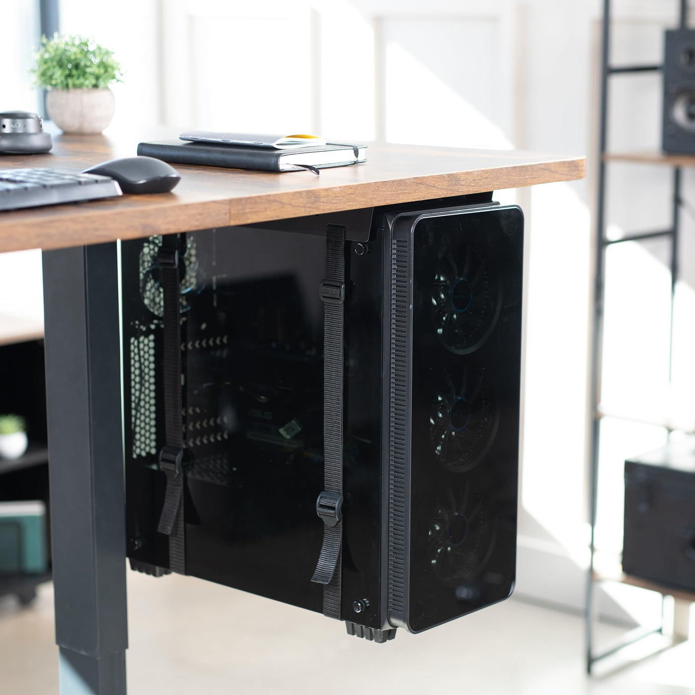 Vivo Under Desk And Wall Mount Pc Adjustable Strap And Steel Bracket Holder, Computer Case Carrier, Black, Mount Pc02S