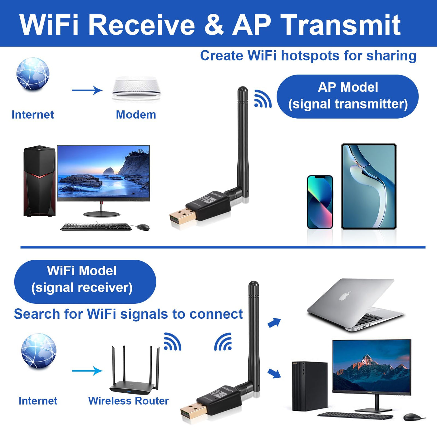 Q: Can this USB WiFi adapter be used for online gaming and streaming?A: Yes, the USB WiFi adapter is designed for fast and stable connections, making it ideal for online gaming and streaming. With support for dual-band speeds, you can enjoy lag-free gaming and seamless media streaming without interruptions.