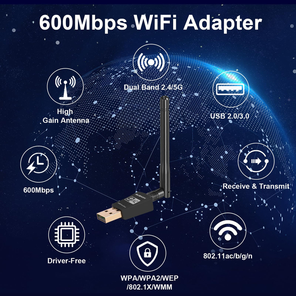 Wifi Antenna,Wifi Adapter Wireless,600Mbps Dual Band 2.4G & 5G(150Mbps/433Mbps),Dual 5Dbi Antennas High Gain 802.11Ac,Supports W
