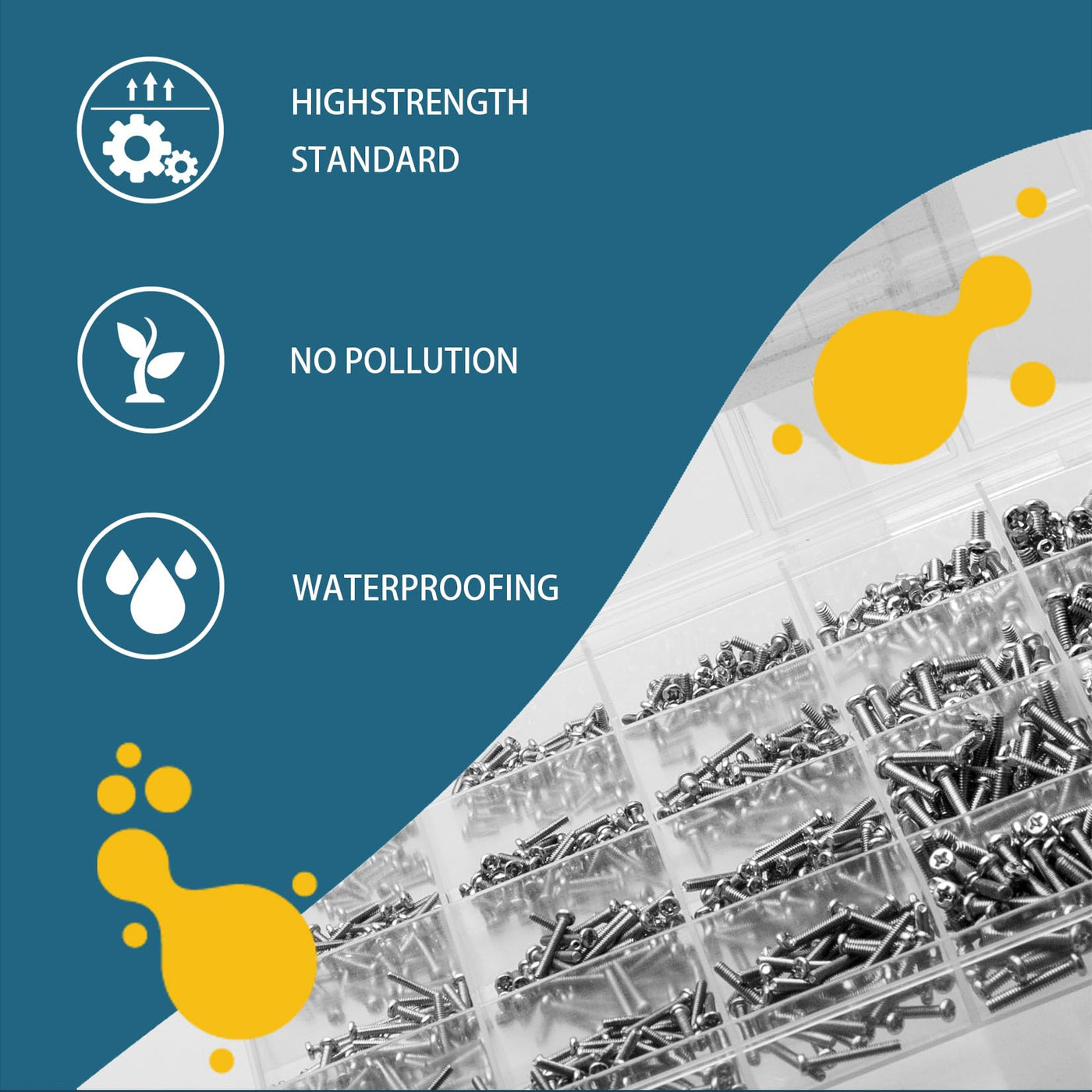 Q: What sizes are included in the 1000-piece screw assortment kit?A: The assortment kit includes 20 different sizes of screws, with 50 pieces each of M1.6, M1.7, M2, M2.5, and M3 in various lengths, ensuring versatility for different repair tasks.