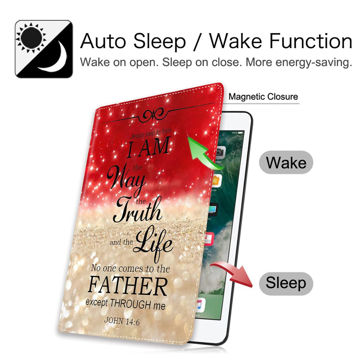 Q: How does the auto wake/sleep function work in this iPad case?A: The XMTMR-Glass iPad Case includes a built-in magnet that automatically wakes your iPad when you open the cover and puts it to sleep when you close it. This functionality helps conserve battery life and enhances convenience.