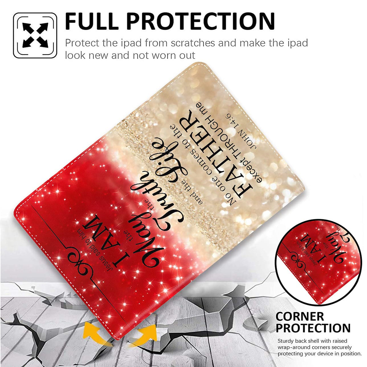 Q: Is the XMTMR-Glass iPad Case protective against drops and scratches?A: Yes, the XMTMR-Glass iPad Case features an anti-scratch and shock-absorbing design. Its high-quality synthetic PU leather outer layer combined with an ultra-thin TPU backboard offers excellent protection against vibrations, drops, and everyday wear and tear.