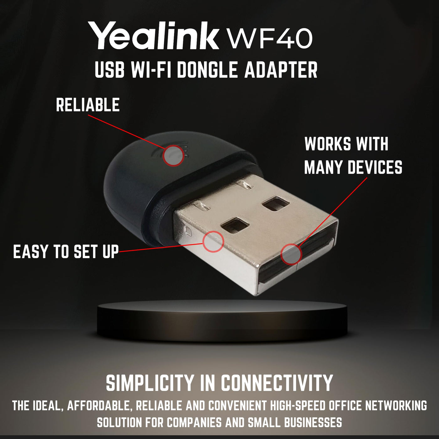 Yealink Wf40 Wi Fi Dongle Adapter Usb (Pack Of 10) For Ip Phones Compatible Models T27G, T29G, T46G, T48G, T41S, T42S, T46S, T