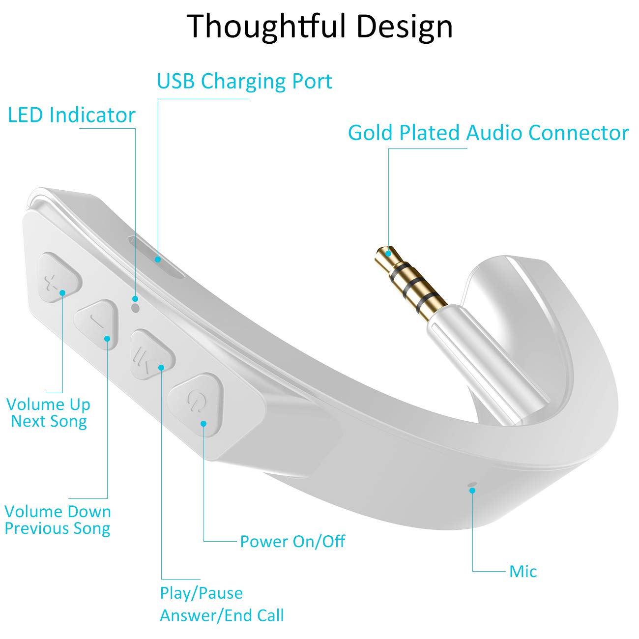 Yocowoco Upgraded Aptx Wireless Bluetooth Adapter For Bose Quietcomfort Qc 25 With Mic/Volume Control, White