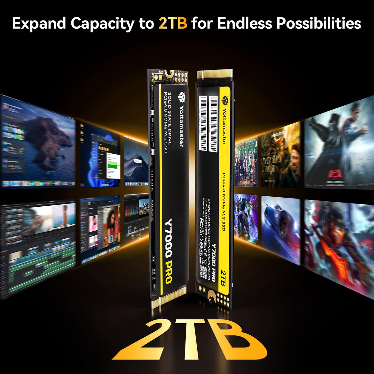 Yottamaster 2Tb Ssd M.2 Pcie 4.0, Up To 7000Mb/S, M.2 2280 Nvme Internal Solid State Drive With 3D Nand Flash, Upgrade Storage For Ps5, Pc Computer, Laptop, Gaming [Y7000 Pro 2Tb]