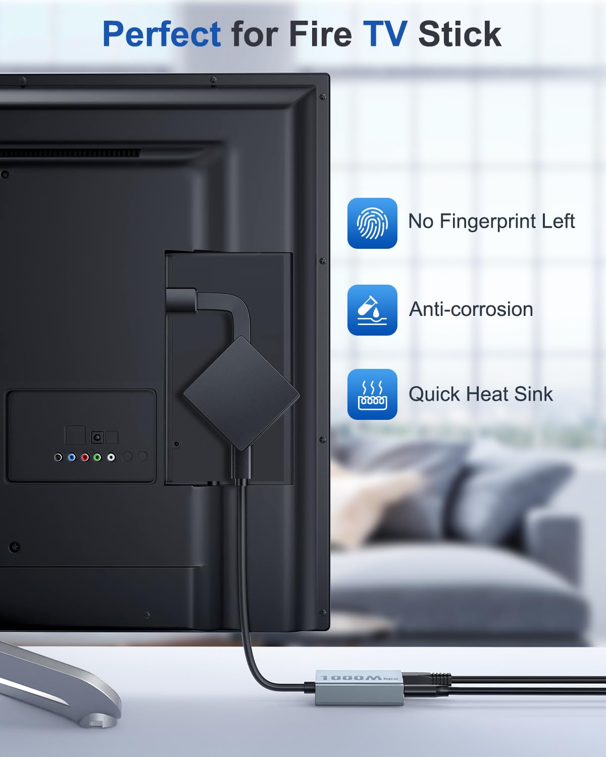 Gigabit Ethernet Adapter For Fire Tv Stick, Micro Usb To Rj45 1000Mbps Ethernet Network Adapter Compatible With Fire Tv Stick 2/3/4K/4K Max, Chromecast Ultra3 / 2 / 1, Audio Google Home Mini