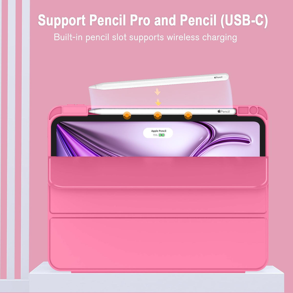 Q: Does this case support the Apple Pencil?A: Yes, the ZryXal iPad Air Case fully supports both the Apple Pencil Pro and Apple Pencil (USB-C). It features a recessed side groove for magnetic charging and a secure magnetic clasp to keep your Pencil safe.