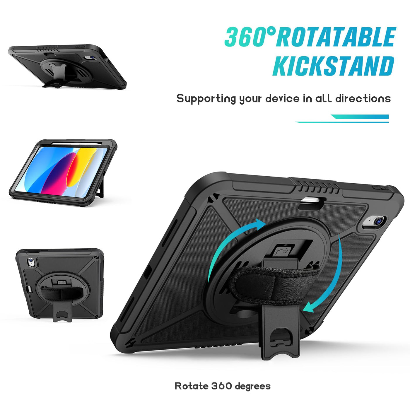 Ztotopcases For Ipad 10Th Generation Case 10.9 Inch With Screen Protector, Pen Holder, Handle Shoulder Strap,360 Rotating Stand Rugged Protective Case For Ipad 10Th Gen 2022(A2696/A2757/A2777), Black