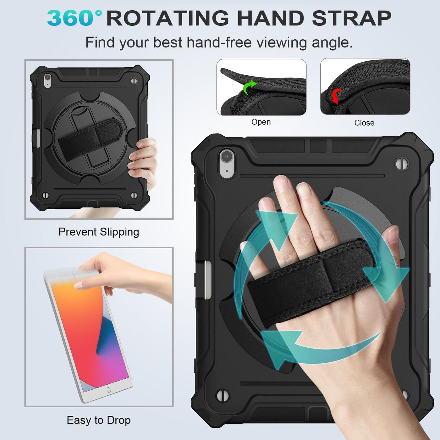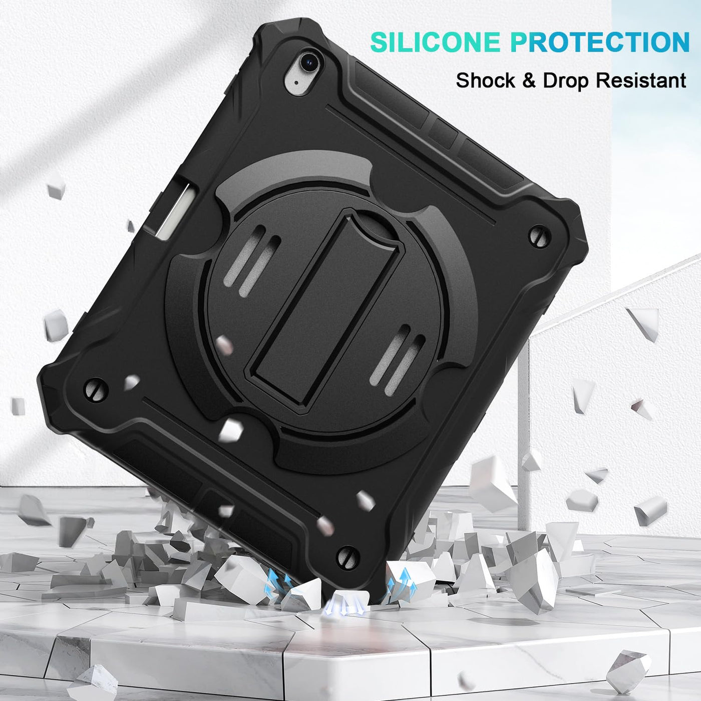 Ztotopcases For New Ipad Air 13 Inch (M2) Case 2024 With Pencil Holder, Shockproof Full Body Drop Protective Cover With 360 Rotating Hand Strap & Stand, Black