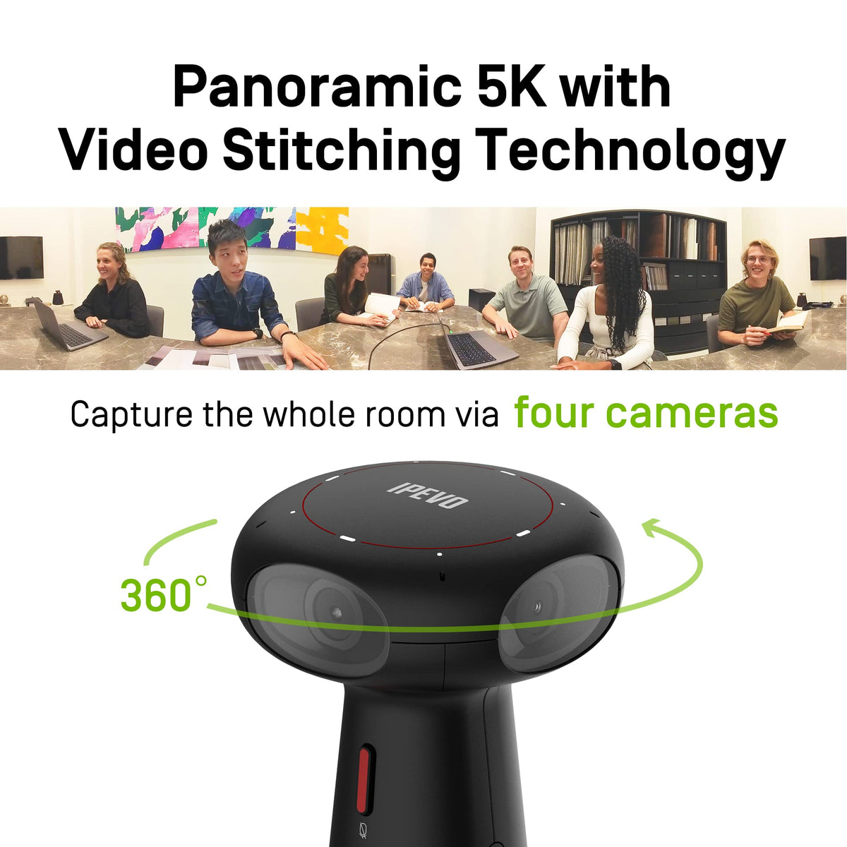 Ipevo Totem 360, Panoramic 360 Degree Conference Camera, Usb C Plug'N'Play, Multiple Ai Mode, W/Speaker, Microphone & Noise Redu