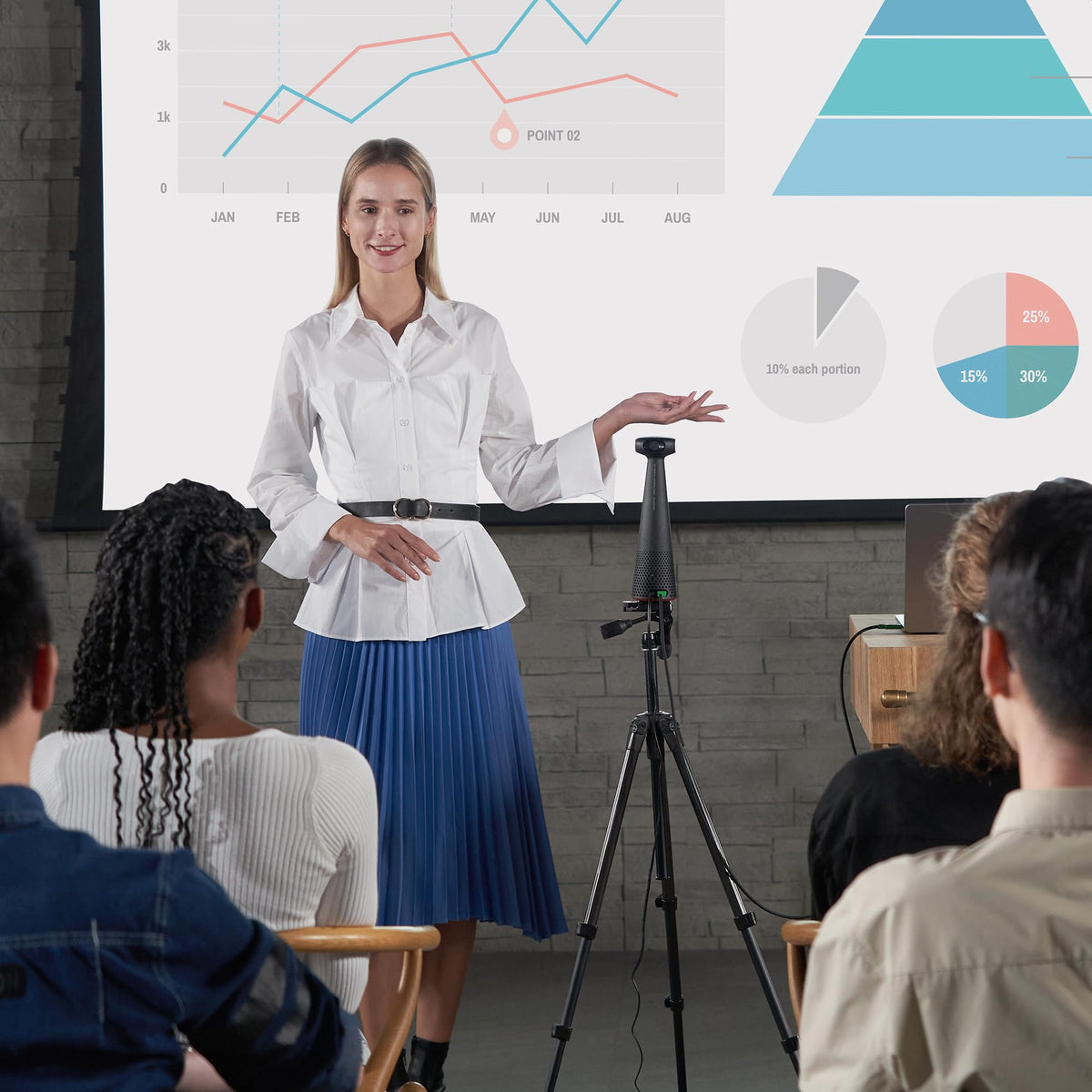 Create An Effective Conferencing Platform For Your Teams, Your Lectures, And Your Presentations. The Immersive Video Modes Of Totem 360 Encourage The Engagement Of The Online Participants, Just As If They Were Present In The Meeting Room Or Lecture Hall. Thanks To Totem'S Easy Portability And Quick Deployment, Any Room Can Become A Hybrid Conferencing Space.There Are Four Video Modes That Provide A Tailored Conferencing Experience Matching Different Scenarios:Conferencing Modethe Conferencing Mode Provides A 360 View Of The Whole Table, While Tracking Up To Four Active Speakers, Highlighting Them In Individual Close-Ups.Surround Modein This Mode, The 360 View Is Divided Into Two Horizontal Screens, Providing A Full View Of Everyone At The Table.Hybrid Learning Modethe Hybrid Learning Mode Makes The Lessons Immersive For The Online Participants, Allowing Them To See The Lecturer And The Class At The Same Time. The Onboard Ai Tracks The Presenter'S Movements, Keeping The Focus Of The Shot On The Presenter And The Presented Materials.Presentation Modethe Presentation Mode Provides A Directional View That Brings Full Focus To Up To Two Presenters. In This Mode, The Ai Tracks The Presenters In Front Of The Camera, Keeping Them In The Focus Of The Shot.Totem 360 Is Equipped With Four Microphones And A 360 Speaker. The Microphones Pick Up Sound From All Directions And Thanks To The Beamforming Technology Are Capable Of Determining The Direction Of The Sound. This Is Used To Track The Active Speakers. The Onboard Ai Noise Reduction Makes Sure Your Meeting Won'T Get Disturbed By Sounds From The Background.