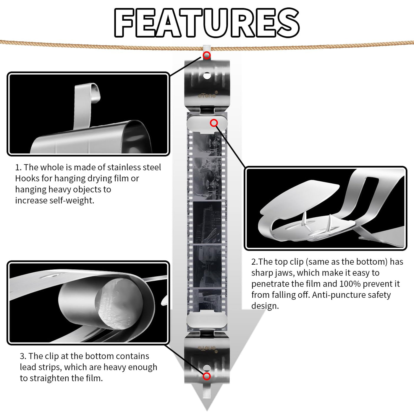 Material: High Quality Stainless Steel, Anti Corrosion And Rustpackage Include: 4X Clips + 2X Lead Blockdesign For 130 Film Air-Dry After Processing, Make Film Surface Flat And Neat, Its Convenient For Processing And Observe Filmbrand: Etonenote: This Clips Need Piercing Film To Fix Firmly On The Film Tail And Top, Please Avoid Piercing Valid Part Of Film .The Bottom Hook Allow Put Weight On It To Increase The Clips Weight.
