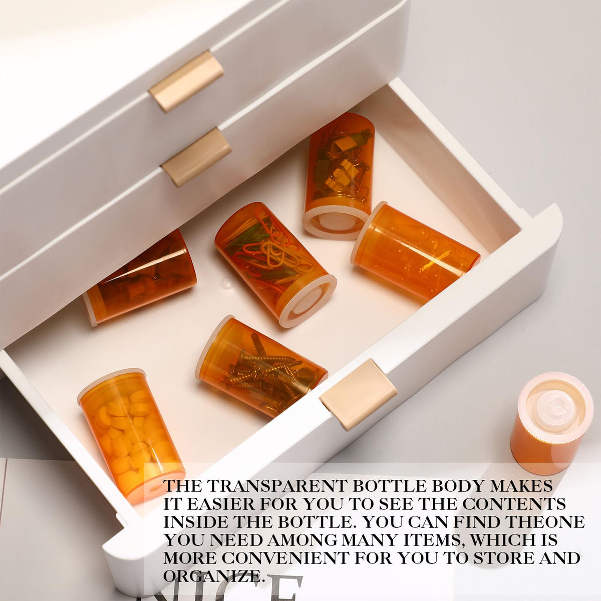 Q: How do the lids of the pill bottles ensure item security?A: The pill bottles feature tight sealing lids that prevent items from falling out, making them reliable for storing various small items, including sewing supplies and coins.