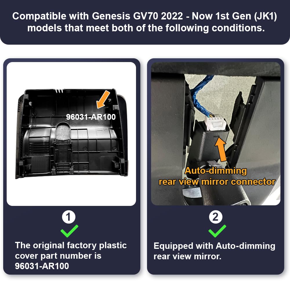 Fitcamx 4K Dash Cam Suitable For Genesis Gv70 2022 2025 2.5T Standard 3.5T Sport Jk1 (Has Auto Dimming), Oem Style, Uhd 2160P Vi