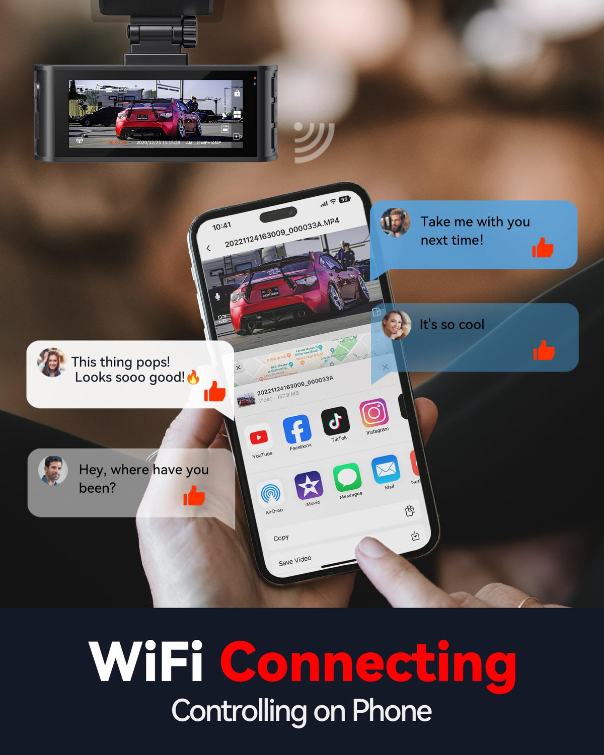 Redtiger Dash Cam 4K Built In Wifi Gps, Front 4K/2.5K Rear 1080P Dual Dash Camera For Cars, 3.18, Ips Screen 310Camera With Wdr/Hdr, Night Vision, G Sensor, Parking Monitor, Loop Recording, With Smart Features And Clear Front And Back Recording, Good Pickup For Semi Trucks, Automobiles, And Suvs, Etc.