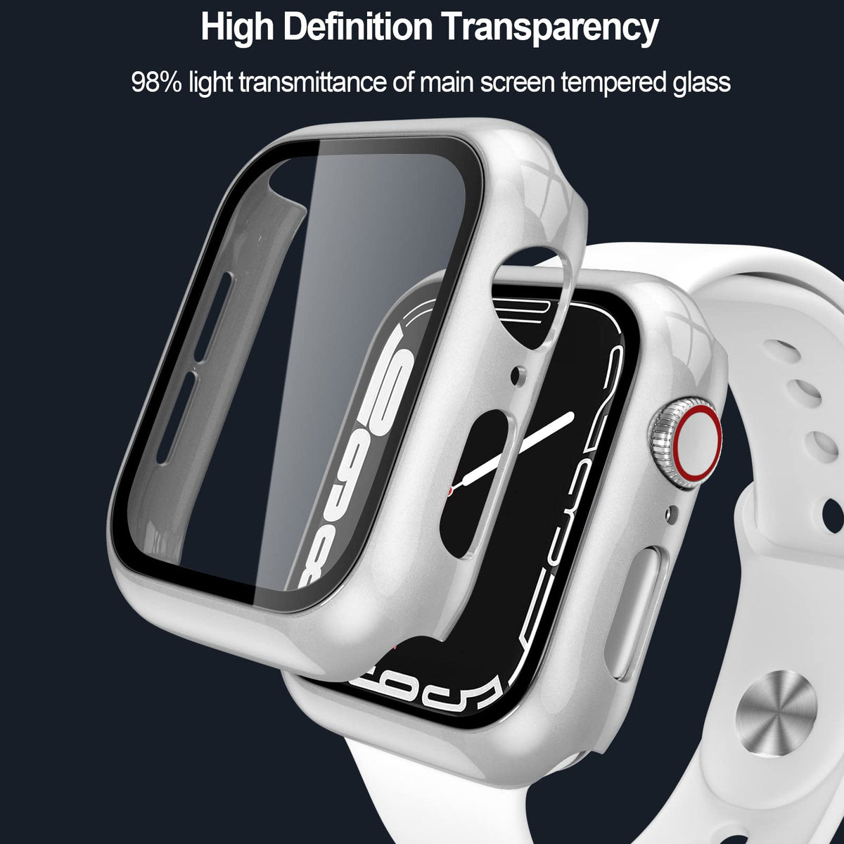Applicationchic Protective Case With Hd Clear Tempered Film Screen Protector Only Compatible With (2023) Iwatch Series 9 45Mm 41Mm, (2022) Iwatch Series 8 45Mm 41Mm And Apple Watch 45Mm 41Mm (2021) Iwatch Series 7.Please Check The Backside Of Your Watch To Find 45Mm Or 41Mm To Make Sure The Right Model Case You Choose.Full Protectivedurable Pc Bumper Cases Built In Slim Hd Clear Screen Protector Full Cover The Screen And Edges, Gives Your Smartwatch The Best Protective Against Drops, Bumps, Scratches And Daily Wear And Tear.Easy To Installsuper Easy To Install For Its Snap-On Design To Avoid Taking The Bands Off First. Convenient Chargingcharge Directly, Don'T Need To Take Off The Smart Watch Case Before Charging Your Iwatch.Kindly Reminder: 1.These Face Covers Don'T Support While Swimming Because The Water Will Get Trapped Underneath The Hard Cases. If You Forget To Take It Off, You Can Wipe It Out With A Cloth Or Wipes. 2.The Stickers On The Glass Surface Are To Protect Glass, Please Check The Screen Quality After You Peel Off The Sticker, If You Find Any Scratches Or Cracked Or Damages, Please Feel Free To Contact Us Directly, We Will Arrange The Charlam New Replacement. Package Includes:Apple Watch Case Built In Screen Protector X 3Wet Wipes X 3Dry Wipes X 3Microfiber Cloth X 1Installation Instructionyou May Concert:Q: Will This Fit The Latest 2021 Apple Watch Series 7?A: Absolutely Yes.Q:Will This Charge With The Case On?A: Yes, Your Watch Will Charge With No Interruptions. Its Open Around The Charging Area. So That Would Not Be A Problem Q:It This Watch Case Difficult To Install, How To Install It?A:No. Its Very Easy , It Just Snaps Over The Smartwatch Face.