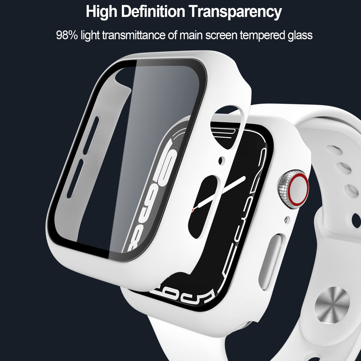 Applicationchic Protective Case With Hd Clear Tempered Film Screen Protector Only Compatible With (2023) Iwatch Series 9 45Mm 41Mm, (2022) Iwatch Series 8 45Mm 41Mm And Apple Watch 45Mm 41Mm (2021) Iwatch Series 7.Please Check The Backside Of Your Watch To Find 45Mm Or 41Mm To Make Sure The Right Model Case You Choose.Full Protectivedurable Pc Bumper Cases Built In Slim Hd Clear Screen Protector Full Cover The Screen And Edges, Gives Your Smartwatch The Best Protective Against Drops, Bumps, Scratches And Daily Wear And Tear.Easy To Installsuper Easy To Install For Its Snap-On Design To Avoid Taking The Bands Off First. Convenient Chargingcharge Directly, Don'T Need To Take Off The Smart Watch Case Before Charging Your Iwatch.Kindly Reminder: 1.These Face Covers Don'T Support While Swimming Because The Water Will Get Trapped Underneath The Hard Cases. If You Forget To Take It Off, You Can Wipe It Out With A Cloth Or Wipes. 2.The Stickers On The Glass Surface Are To Protect Glass, Please Check The Screen Quality After You Peel Off The Sticker, If You Find Any Scratches Or Cracked Or Damages, Please Feel Free To Contact Us Directly, We Will Arrange The Charlam New Replacement. Package Includes:Apple Watch Case Built In Screen Protector X 3Wet Wipes X 3Dry Wipes X 3Microfiber Cloth X 1Installation Instructionyou May Concert:Q: Will This Fit The Latest 2021 Apple Watch Series 7?A: Absolutely Yes.Q:Will This Charge With The Case On?A: Yes, Your Watch Will Charge With No Interruptions. Its Open Around The Charging Area. So That Would Not Be A Problem Q:It This Watch Case Difficult To Install, How To Install It?A:No. Its Very Easy , It Just Snaps Over The Smartwatch Face.