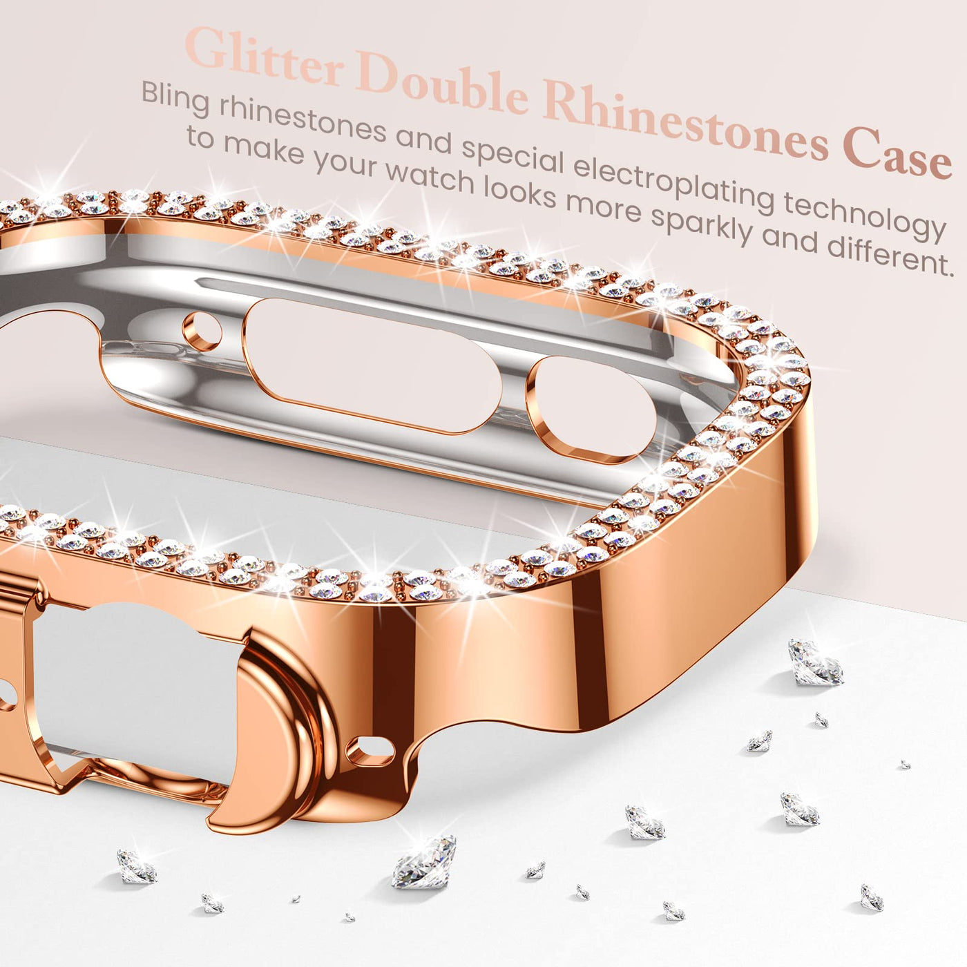 Q: How do I care for my Apple Watch bumper case?A: To maintain the sparkle and quality of the rhinestones and the case, gently clean it with a soft, dry cloth. Avoid exposing it to harsh chemicals or excessive moisture.