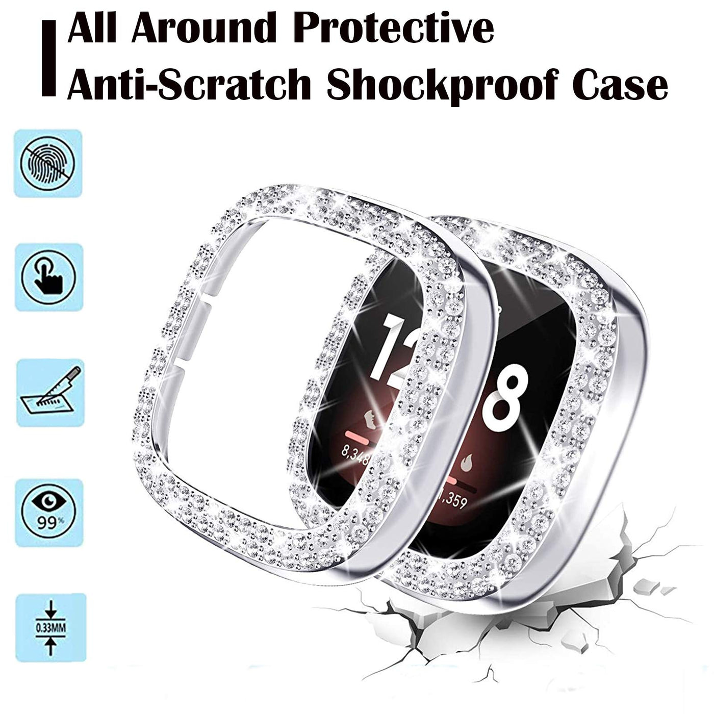 Singear [Double Diamonds] Bling Protector Case Compatible For Fitbit Versa 3/ Sense, Shiny Crystal Rhinestone Bumper Frame For W