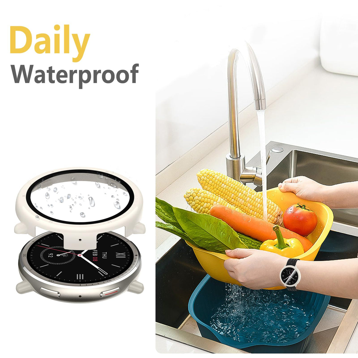 Wd&Cd 2 Pack Case Compatible For Amazfit Active 2 White+Clear, Hard Pc Case With Tempered Glass Screen Protector Compatible With