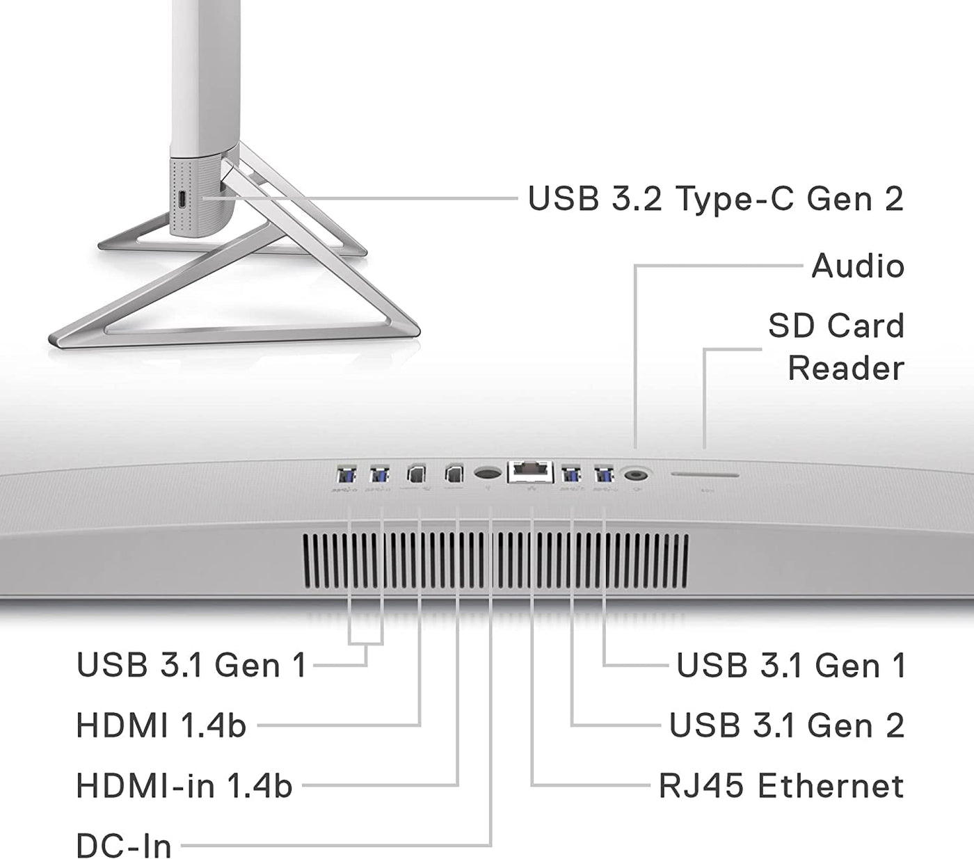 Key Features and Benefits:CPU: Intel Core i5-1235U Processor (10 Cores, 12 Threads, 12MB Intel Smart Cache, Up to 4.40 GHz Max Turbo Frequency) Memory: Up to 32GB DDR4 RAM Hard Drive: Up to 2TB Solid State Drive Operating System: Windows 11 Home Display: 23.8" Touchscreen AIT Infinity Anti-Glare FHD (1920 x 1080) Display Graphics: Intel Iris Xe Graphics Audio: Stereo Speakers with MaxxAudio Pro Ports: 4 x USB 3.1 Type-A 1 x USB 3.2 Type-C 2 x HDMI 1.4b 1 x headphone/microphone combo 1 x RJ-45 1 x Power Jack Media Drive: SD Card Reader Optical Drive: None Wireless Connectivity: Intel Wi-Fi 6E (6GHz) AX211 2x2 Bluetooth 5.2 Wireless Card Keyboard & Mouse: Dell Pro Wireless Keyboard and Mouse - KM5221W White - English Webcam: 1080p Pop-up camera with integrated dual array digital microphones Power Supply: 65 W Smart AC power adapter Dimensions: 21.36" x 16.21" x 1.58" Weight: 12 Pounds Color: White