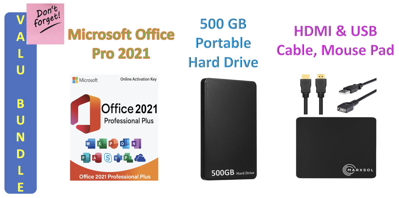Accessory: MarxoslAccessory (Microsoft Office 2021 Pro, 500GB Portable Hard Driver, HDMI Cable, USB Cable and Mouse Pad)