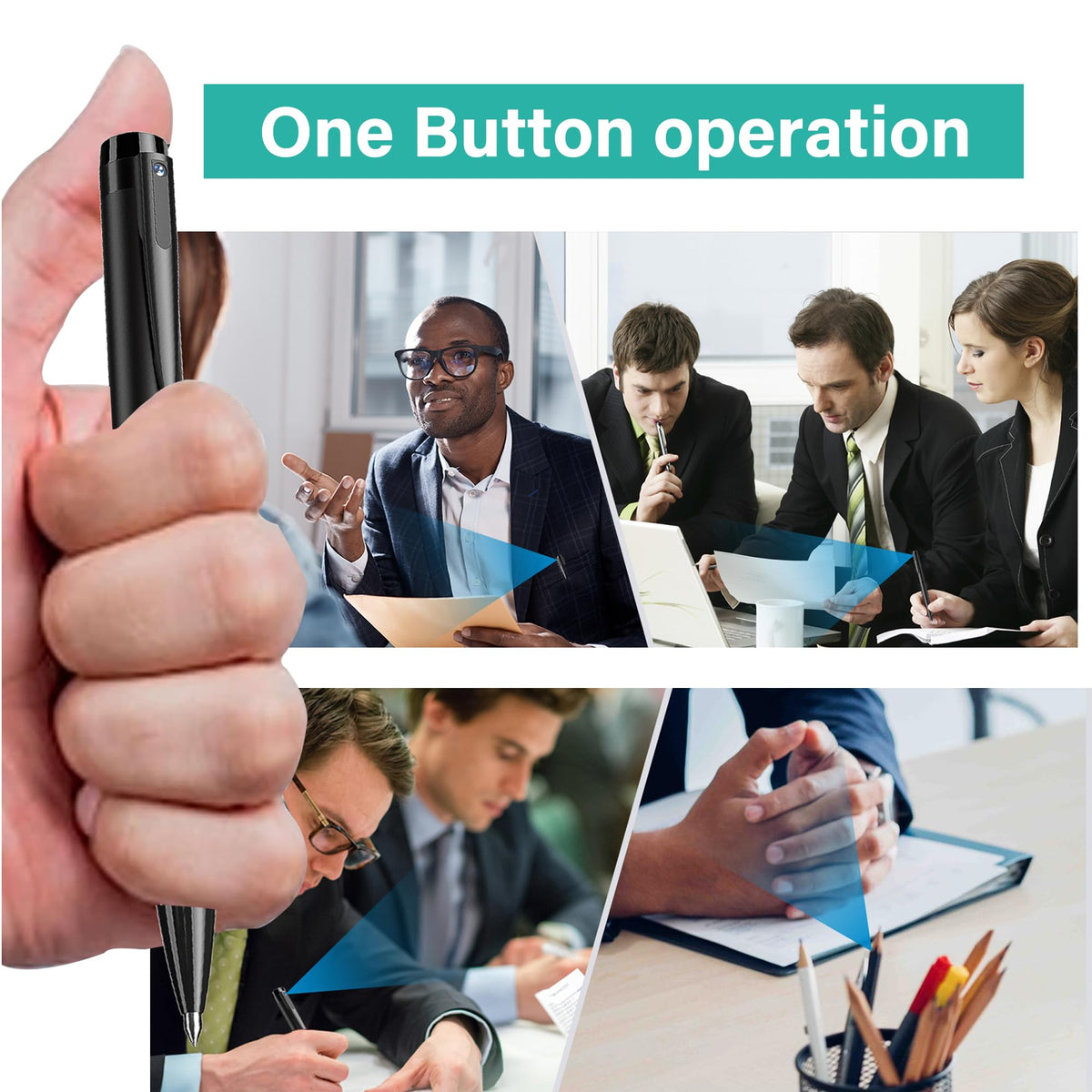 Body Camera Pen With 64Gb Memory Card, 1080P Hd Mini Surveillance Camera, Portable Pocket Cam, Black