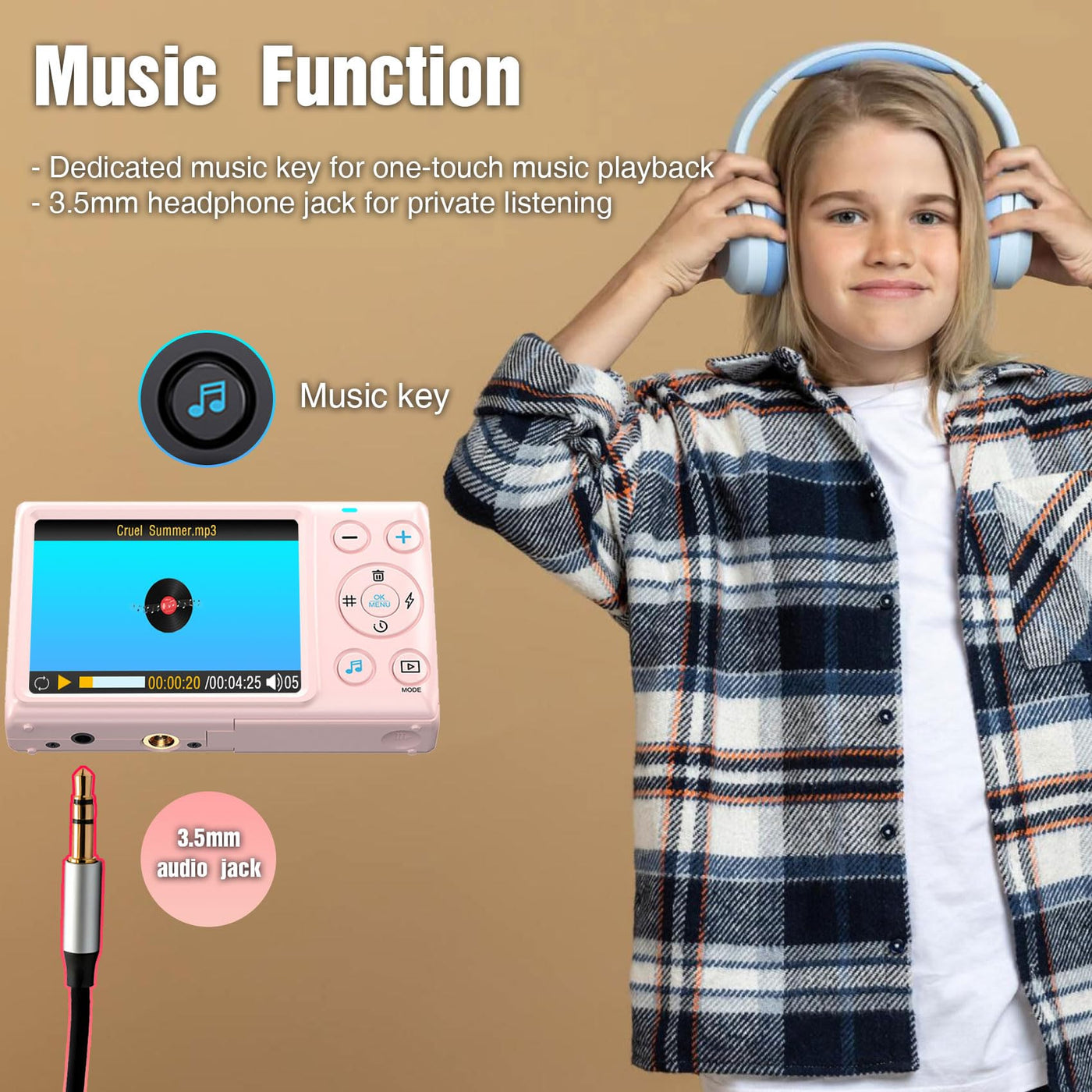 Digital Camera Pink, 4K Vlogging Camera, Vintage Camera, Autofocus 64Mp 18X Digital Zoom Compact Point And Shoot Digital Cameras