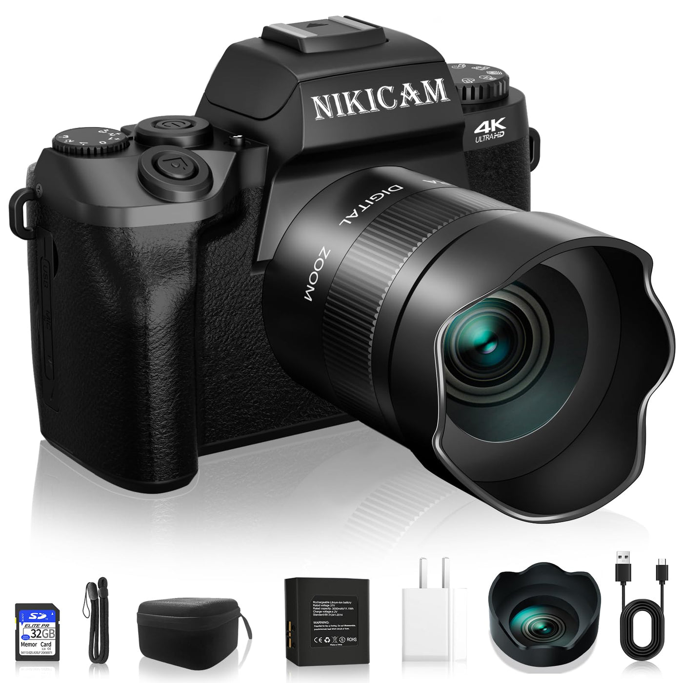 Digital Cameras For Photography, Nikicam 4K 64Mp Wifi Vlogging Camera For Youtube With Dual Camera, 4'' Touch Screen Compact Cam
