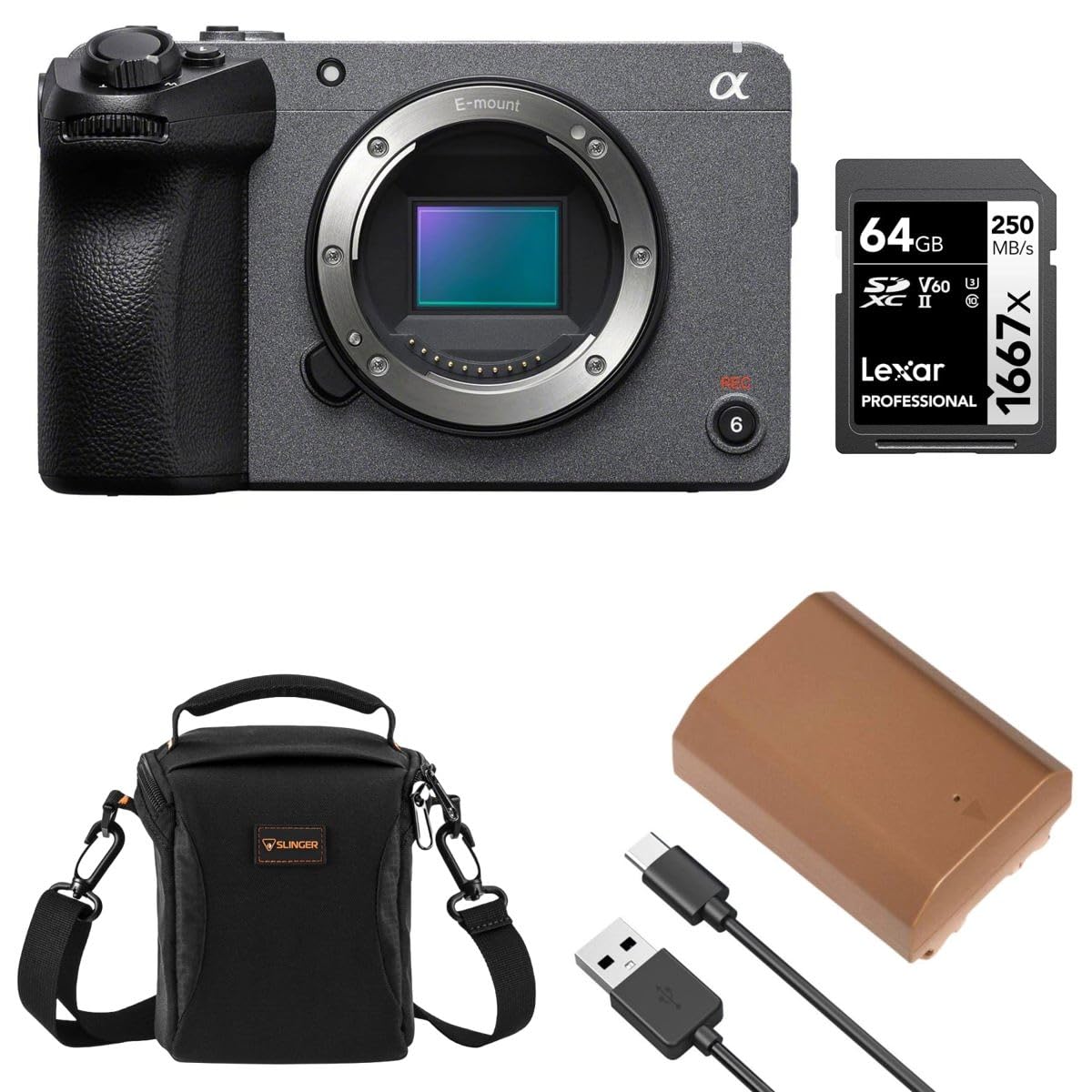 Sony Fx30 Super 35 Cinema Line Camera With Slinger Multi-Device Shoulder Bag, Extra Battery, Sd Card (Without Lens)