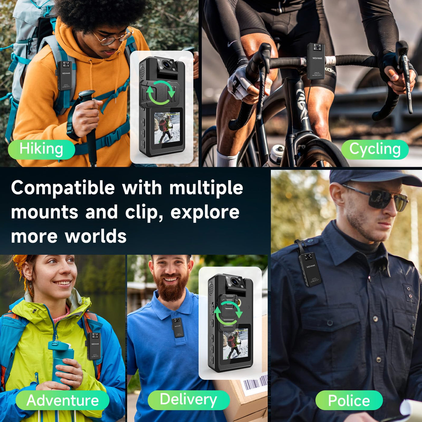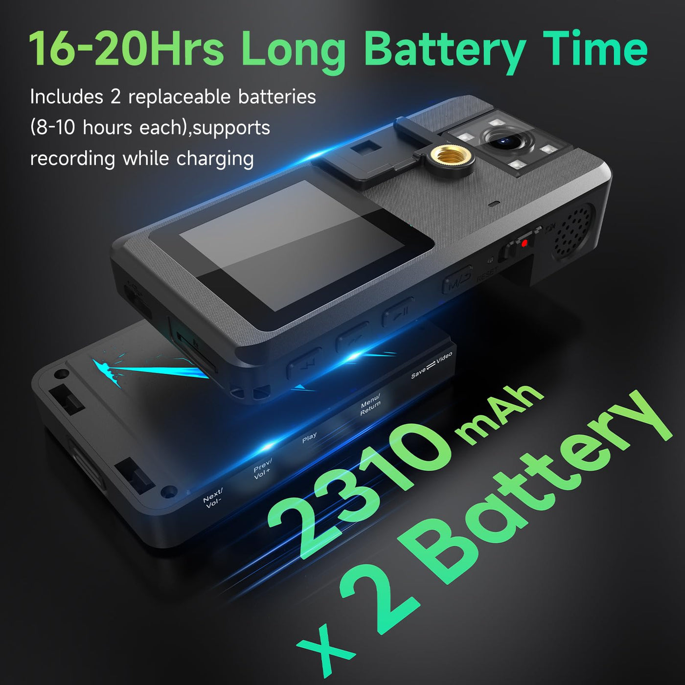 Wevoor 1296P Fhd Body Camera A53, 20Hours Dual Battery Pack, 64Gb Wearable Police Camera With Ir Night Vision + 180 Rotatable Le