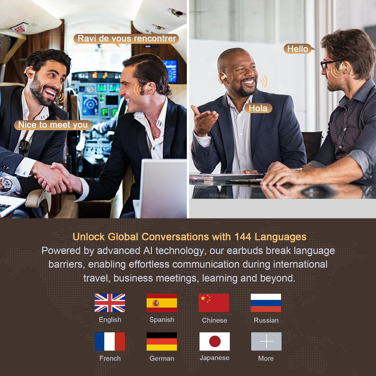 Experience The Ultimate 3-In-1 Smart Wireless Translation Earbuds Real Time 1.Unlock Global Conversations With 144 Languages 2.Adapt To Any Situation With Multi-Scenario Translation Modes 3.Real-Time 3-In-1 Translation Earbuds 144 Languages & Accents, Perfect For Travelers, Professionals, And Music Lovers 4.Long-Lasting Battery Life : The Advanced Battery Technology Retains Its Charge Even With Extended Use. Plus, The Convenient Charging Case Keeps Your Earbuds Powered Up And Ready To Go. 5.Comfort Meets Style : Our Earbuds Boast An Ergonomic Design, Ensuring A Snug And Secure Fit For All-Day Comfort. Perfect For Work, Leisure, Or Daily Activities, They'Re Designed To Keep Up With Your Busy Lifestyle. Immerse Yourself In Rich, Balanced Sound With Deep Bass And Clear Treble. With Seamless Bluetooth Pairing And Advanced Noise-Canceling Microphones, Stay Connected On-The-Go And Enjoy Exceptional Video Call Clarity - Even In Noisy Environments. Package List: Translation Earbuds Charging Case Type-C Charging Cable User Manual