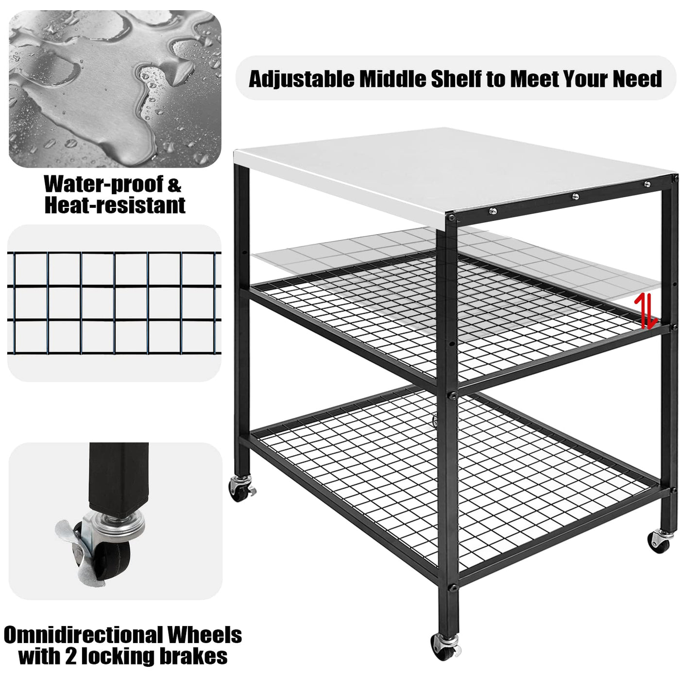?Sturdy Design For Tough Task? Stainless Steal With Anti-Corrosion Coating, Perfect For Placing A Pizza Oven Pizza Oven And Pizza Oven Accessories, Portable Grill Or Griddle; Also Creating Ample Workplace For Outdoor Cooking, Kitchen Or Serving Area With An Easy To Clean Finish. | ?Decide Your Own Storage Capacity With Adjustable Height? Adjustable Under Shelf Allows You Arrange The Storage Space, Keep Ingredients And Pizza Dough At The Ready. | ?Movable And Lockable Design? The 360