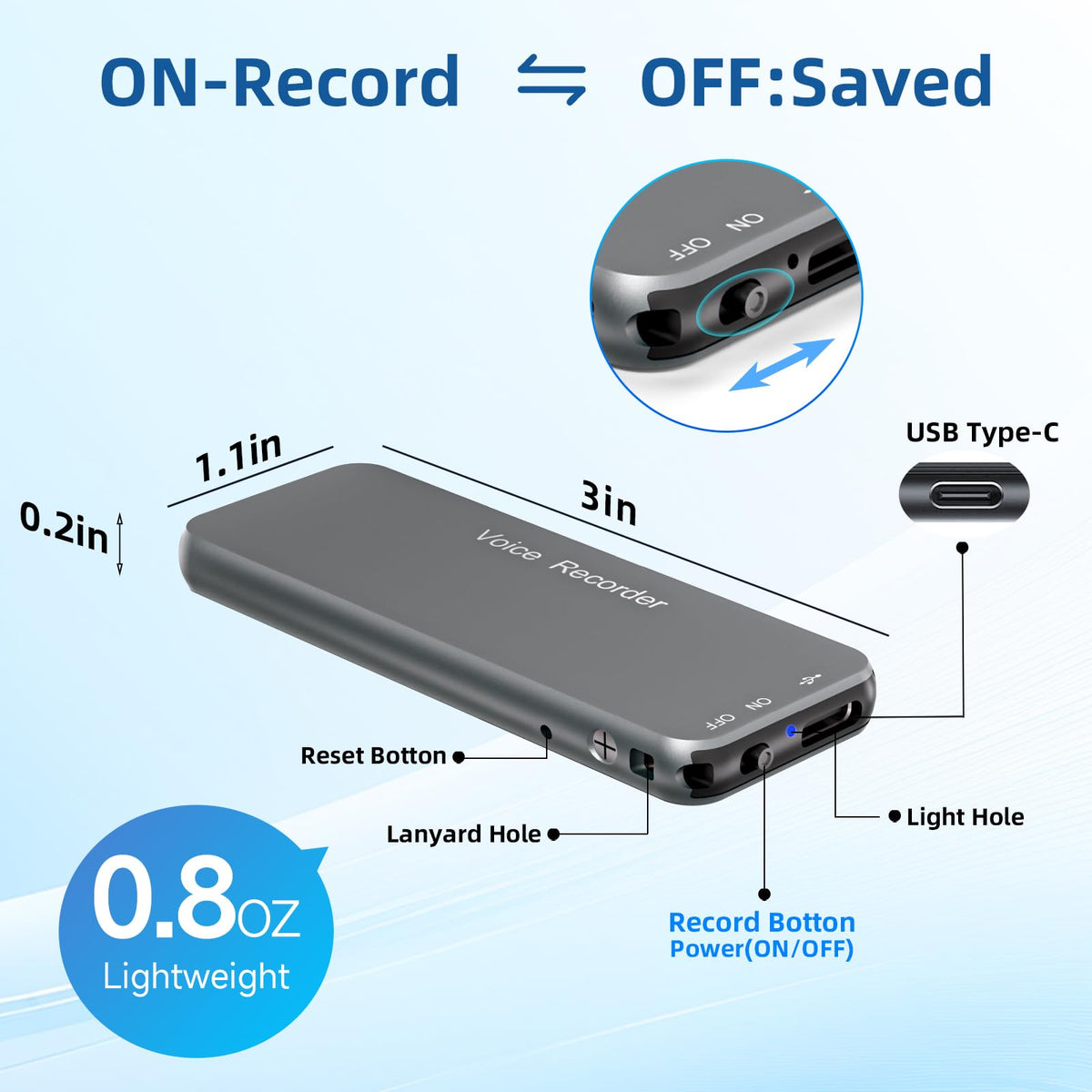 Howabo 128Gb Digital Voice Recorder - Metallic Gray