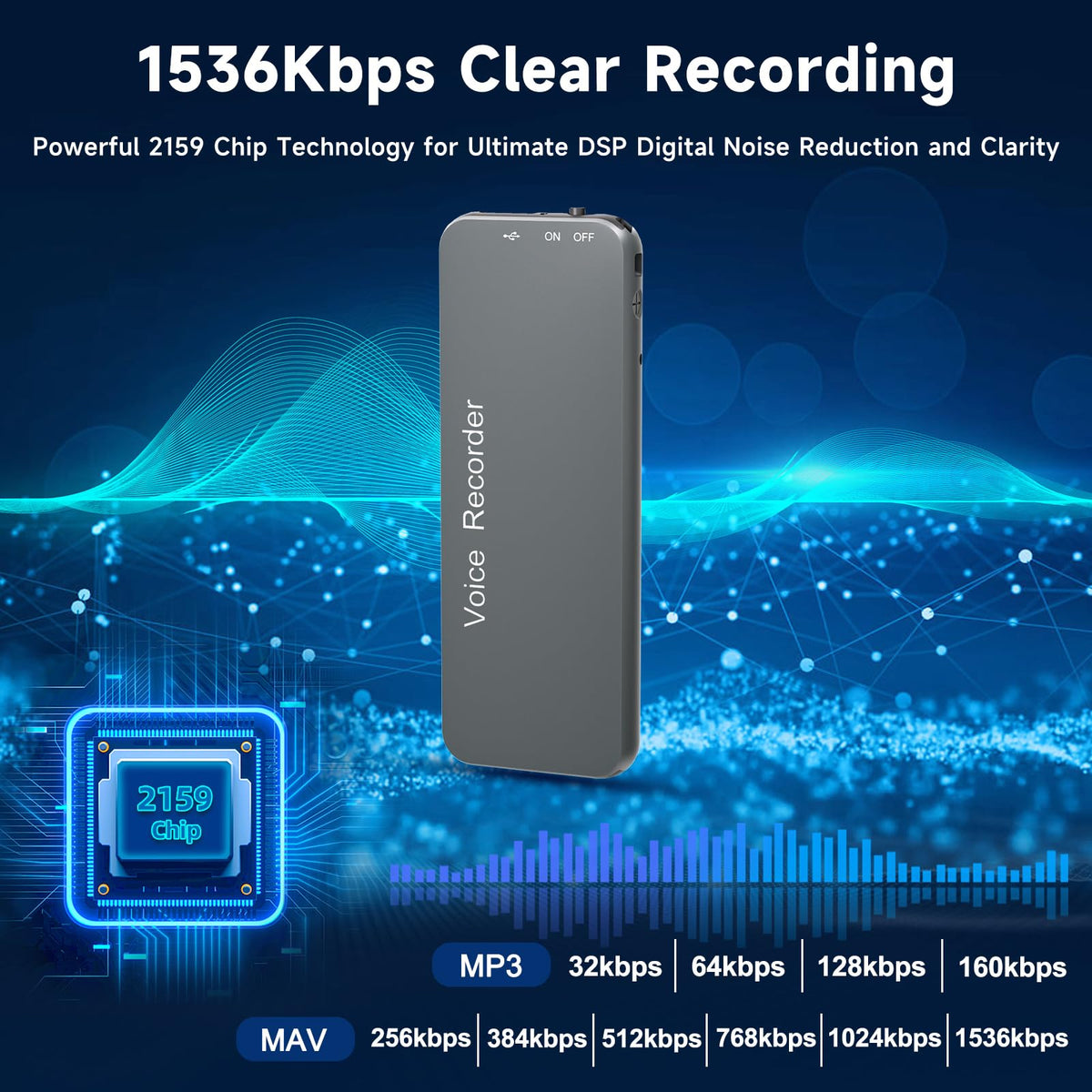 128Gb(1800Hrs) Howabo Voice Activated Recorder With Playback, 40Hrs Recording Device With Metal Housing, 1536Kbps Digital Voice