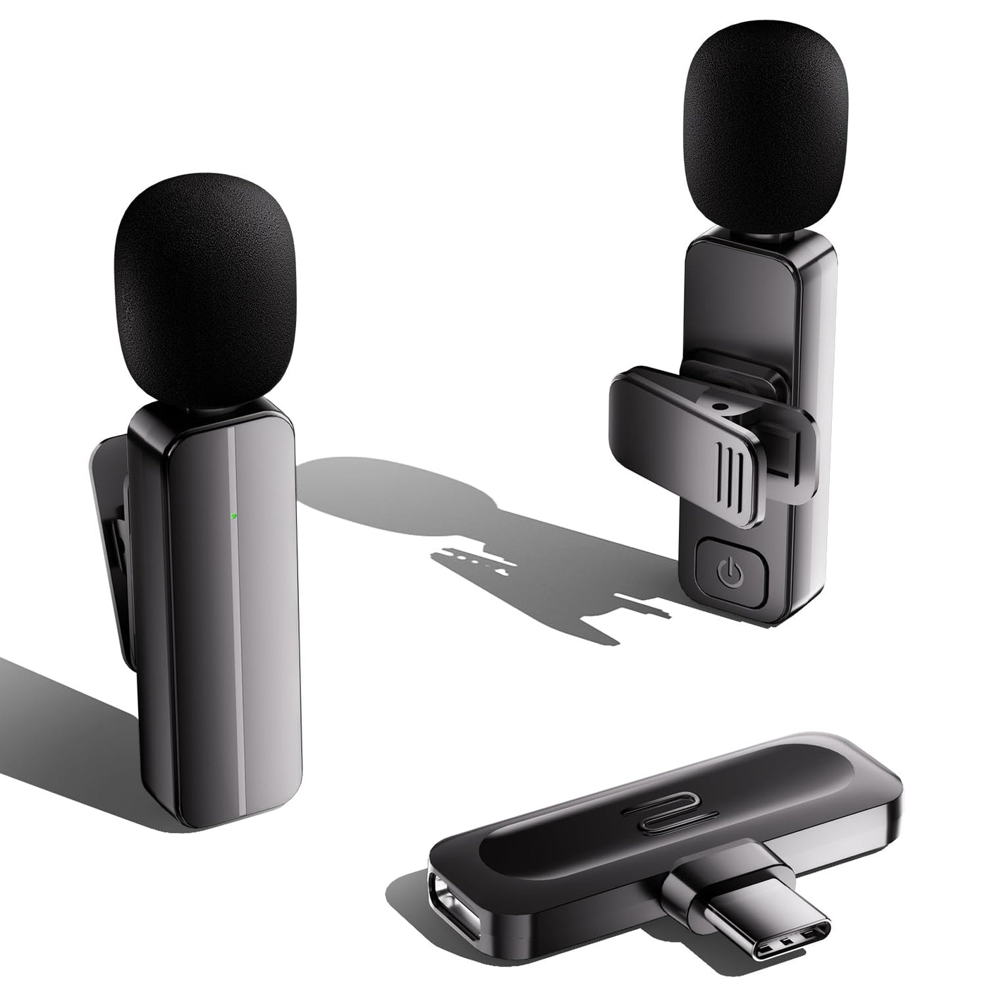 2 Pack Wireless Mini Lavalier Lapel Microphone for Android USB-C