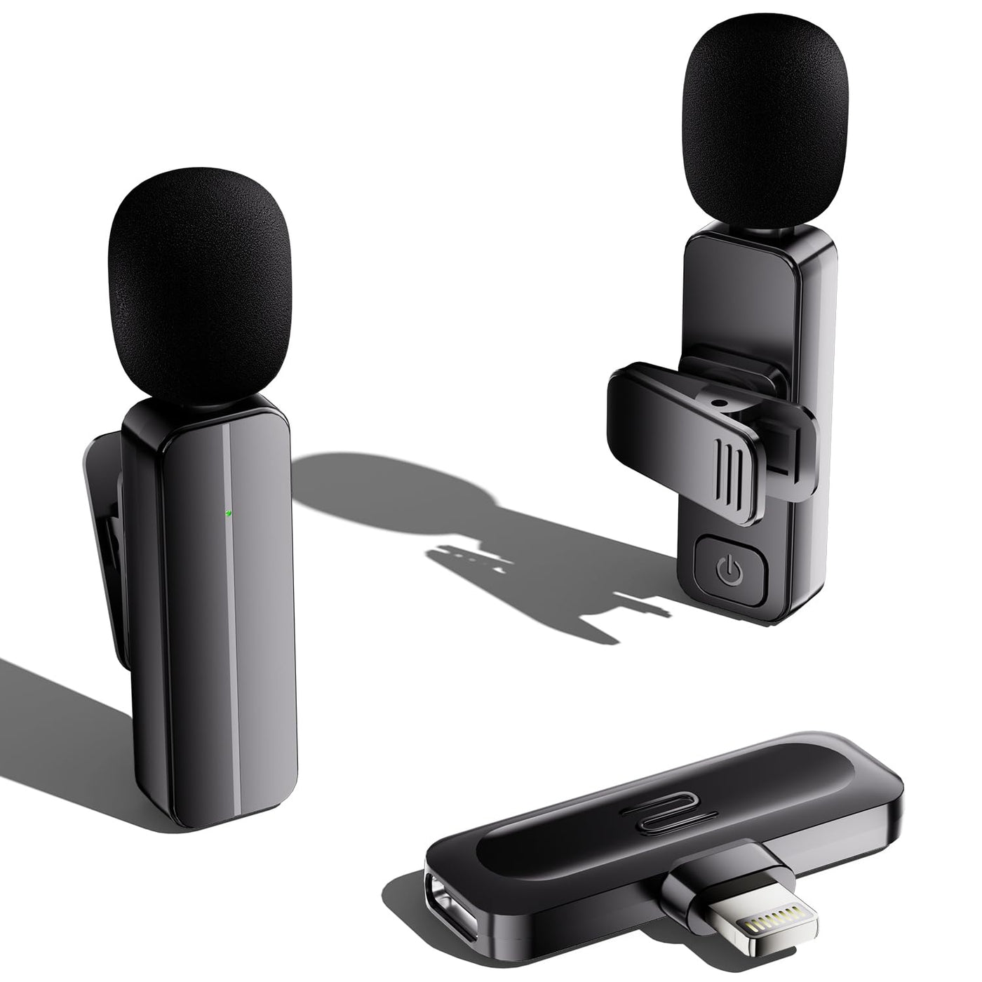 2 Pack Wireless Mini Lavalier Lapel Microphone for iPhone,iPad(Lightning) - 65ft Cordless Clip on Dual Mics with Noise Reduction
