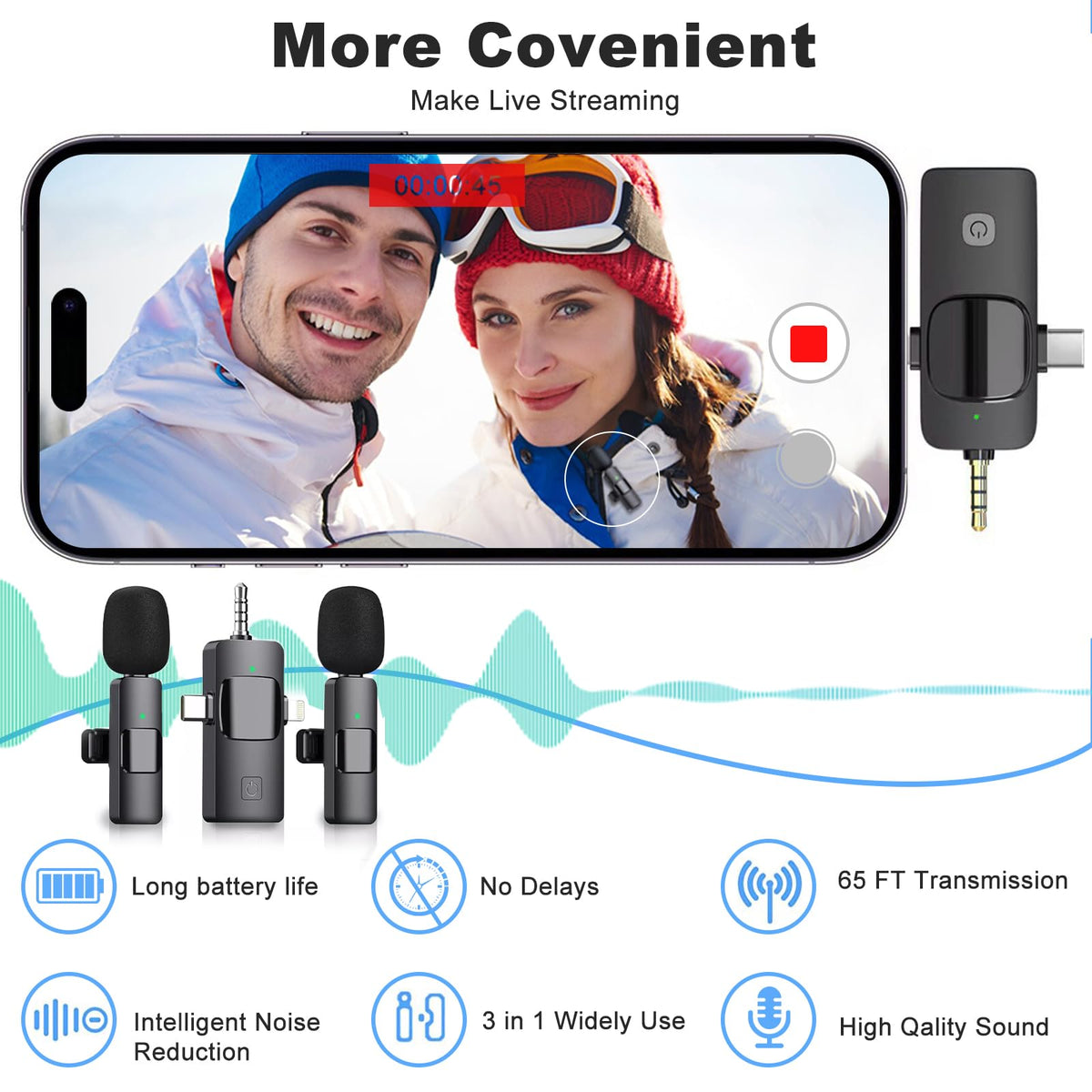 3 In 1 Wireless Lavalier Microphones For Camera Iphone Microphone, Mini Mic, Usb-C Microphone