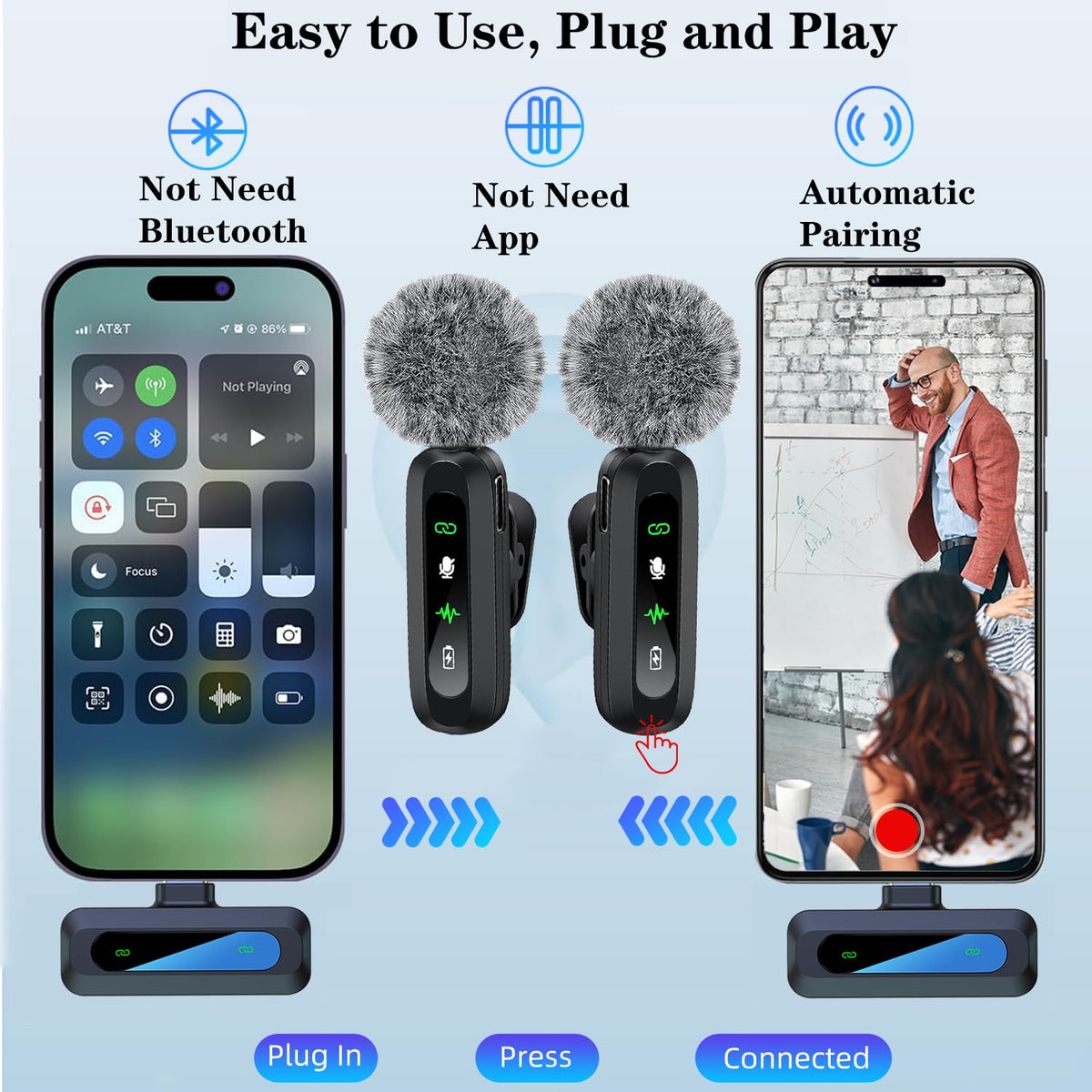 Abylfe Wireless Lavalier Microphone For Iphone Android Plug Play,2 Pack Mini Microphone Professional Noise Reduction Recording C