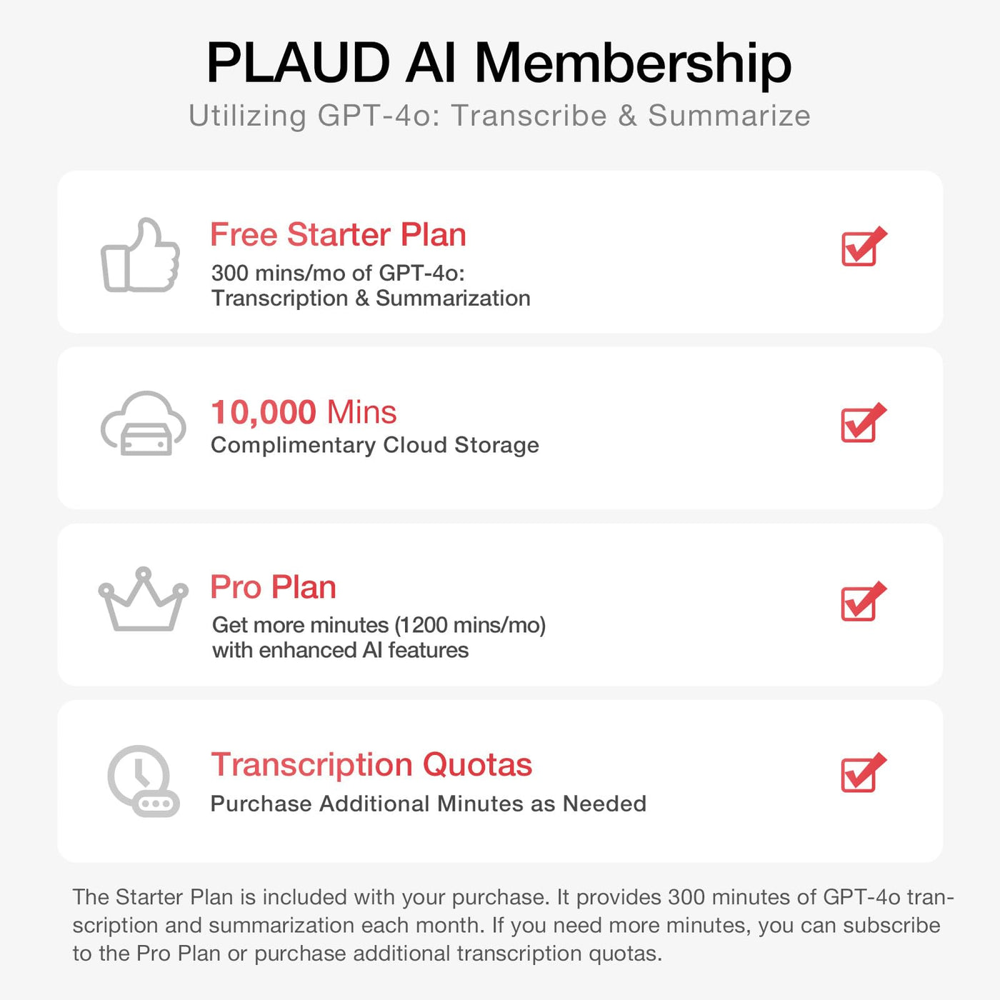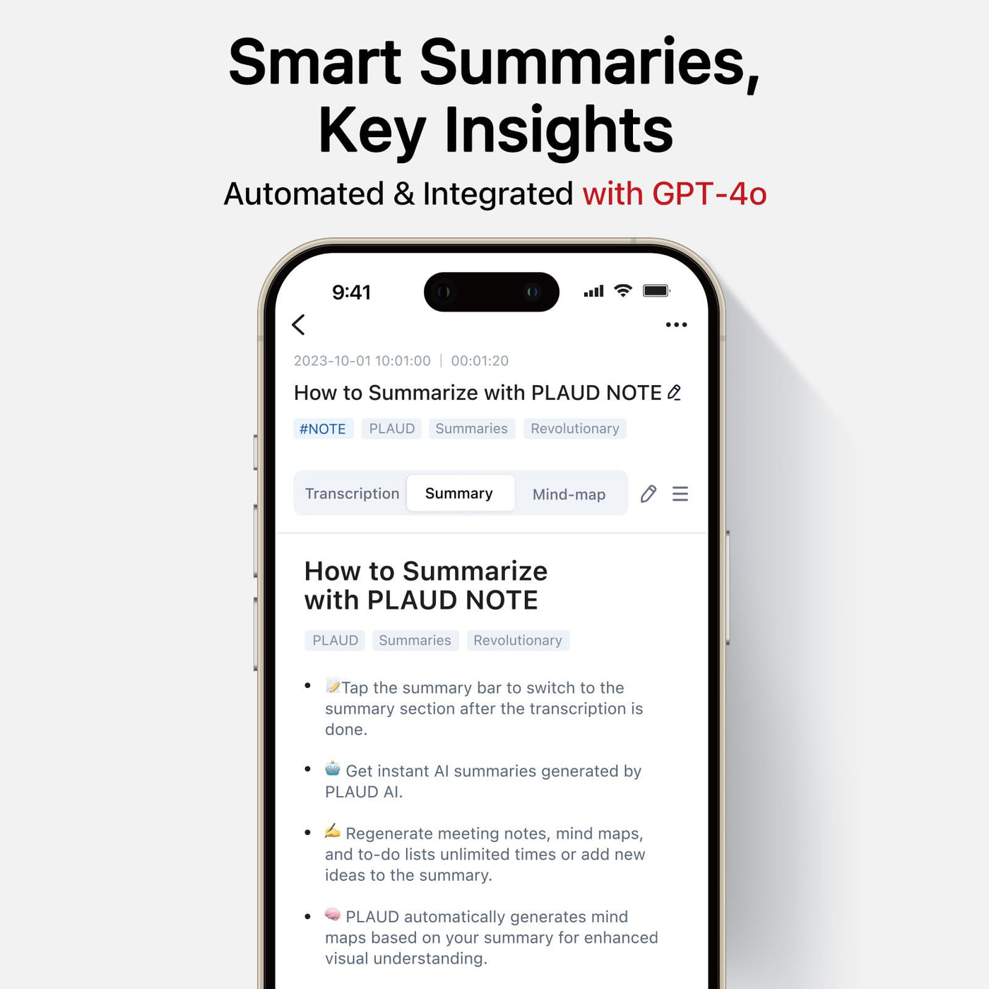 Plaud Note Ai Voice Recorder Will Subvert The Voice Recorders You Have Used In The Past. Powered By Chatgpt, Plaud Note Combines Cutting-Edge Technology With Easy-To-Use Features To Boost Your Workflow Like Never Before. Say Hello To Seamless Efficiency And Goodbye To Mundane Tasks! Effortless Transcription And Summarization: Plaud Note Simplifies Tedious Transcription And Summarization Tasks. Using Openai'S Whisper Stt Model, It Transcribes Audio Into Text With Exceptional Accuracy Across 59 Languages. Whether It'S Meetings, Lectures, Interviews, Or Memos, Plaud Note Lets You Convert Speech To Text Effortlessly, Freeing You To Focus On Your Priorities. Smart Ai Summary Templates: With Plaud Note'S Ai-Powered Summarization, Powered By Gpt4, Creating Meeting Notes, Lecture Summaries, Or Interview Transcripts Is A Breeze. Customizable Templates Cater To Various Needs, Helping Distill Key Insights And Action Items From Your Recordings Efficiently. Seamless Multi-Platform Access: Access Recordings And Transcriptions Anytime, Anywhere Via Plaud Note'S Mobile App And Web Portal. Enjoy 10,000 Minutes Of Cloud Storage For Easy Organization, Playback, And Sharing With Colleagues. Facilitate Team Collaboration With Transcription And Summarization Features For Convenient Sharing And Editing. Dual-Mode Precision Recording: Plaud Note'S Dual Recording Engine Ensures Crystal-Clear Audio Quality, Capturing Ambient Sounds And Internal Phone Sounds Accurately. With One-Touch Recording And Vibration Conduction Sensor (Vcs) Technology, It Delivers Unmatched Clarity And Precision. Revolutionary Ai Hardware: Boasting 30 Hours Of Continuous Recording And 64Gb Of Built-In Memory, Plaud Note Offers Ample Storage And Reliability. Its Ultra-Slim Design And Ai Noise Cancellation Technology Make It Perfect For On-The-Go Recording, Ensuring Pristine Audio Quality. Privacy First: Plaud Note Prioritizes Your Privacy With Local Data Encryption And Strict Access Controls. Your Sensitive Information Remains Secure, With Data Upload And Processing Requiring Explicit Authorization For Confidentiality. Everything You Need Is Included: 1 Plaud Note, 1 Black Case, 1 Magnetic Ring, And 1 Magnetic Charging Cable. Plus: All Users Enjoy A Complimentary 300 Minutes Per Month For Gpt-4O Transcription And Summarization Elevate Your Productivity And Streamline Your Workflow With Plaud Note - The Ultimate Ai-Powered Assistant For Modern Professionals. Plaid Note
