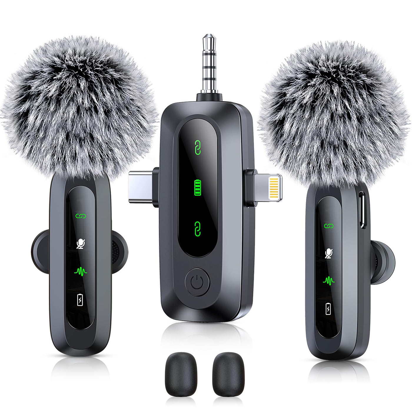 3 in 1 Wireless Lavalier Microphone for iPhone, iPad, Android, Camera, 2 Pack Professional Mini Microphone LED Display Clip on Mic with Noise Reduction for Video Recording TikTok YouTube Vlog
