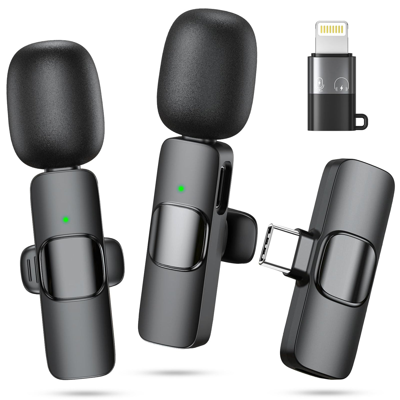 CDMVAB Wireless Microphone for iPhone, Android Phone, Laptop, 2 Pack Lavalier Microphone for Video Recording, Mini Mics with Noi