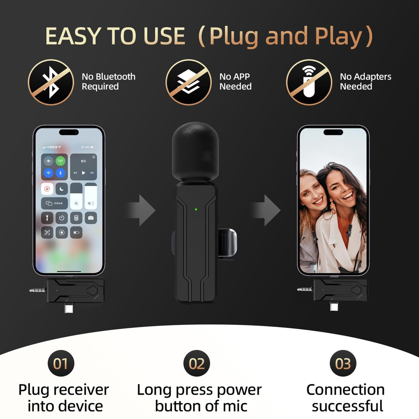 Cyhtshfz Mini Microphone For Iphone, Android, Camera, Ipad, Pc, 3 In 1 Professional Wireless Lavalier Microphone With Intelligent Noise Reduction For Video Recording, Vlog, Tiktok,Live Stream ?2 Pcs?