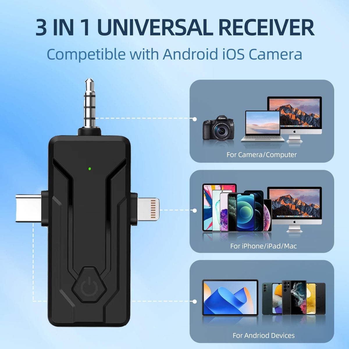 Cyhtshfz Mini Microphone For Iphone, Android, Camera, Ipad, Pc, 3 In 1 Professional Wireless Lavalier Microphone With Intelligen