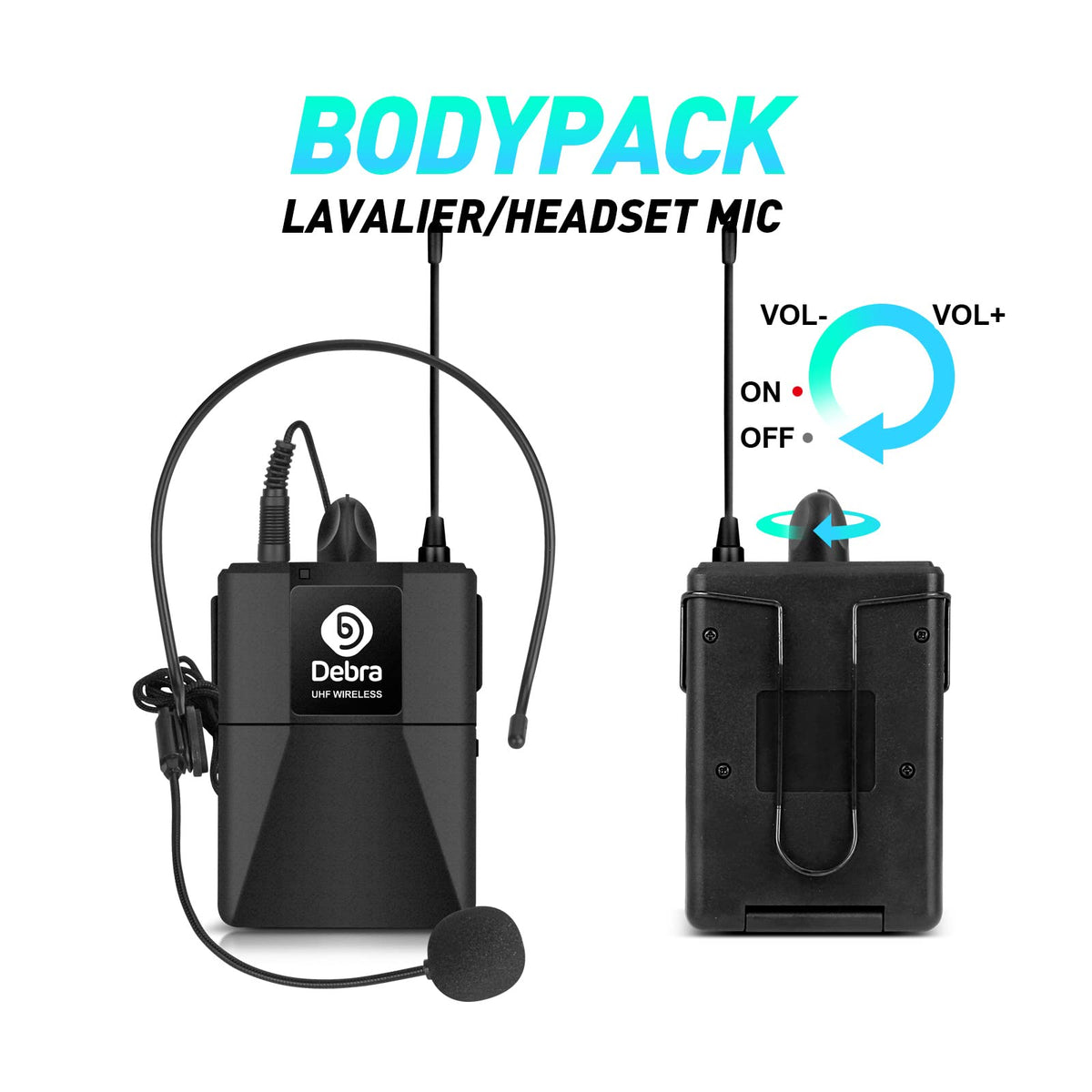 D Debra Audio Au800 Pro Uhf 8 Channel Wireless Microphone System With Cordless Handheld Lavalier Headset Mics, Metal Receiver, Ideal For Karaoke Church Party (8 Bodypack)