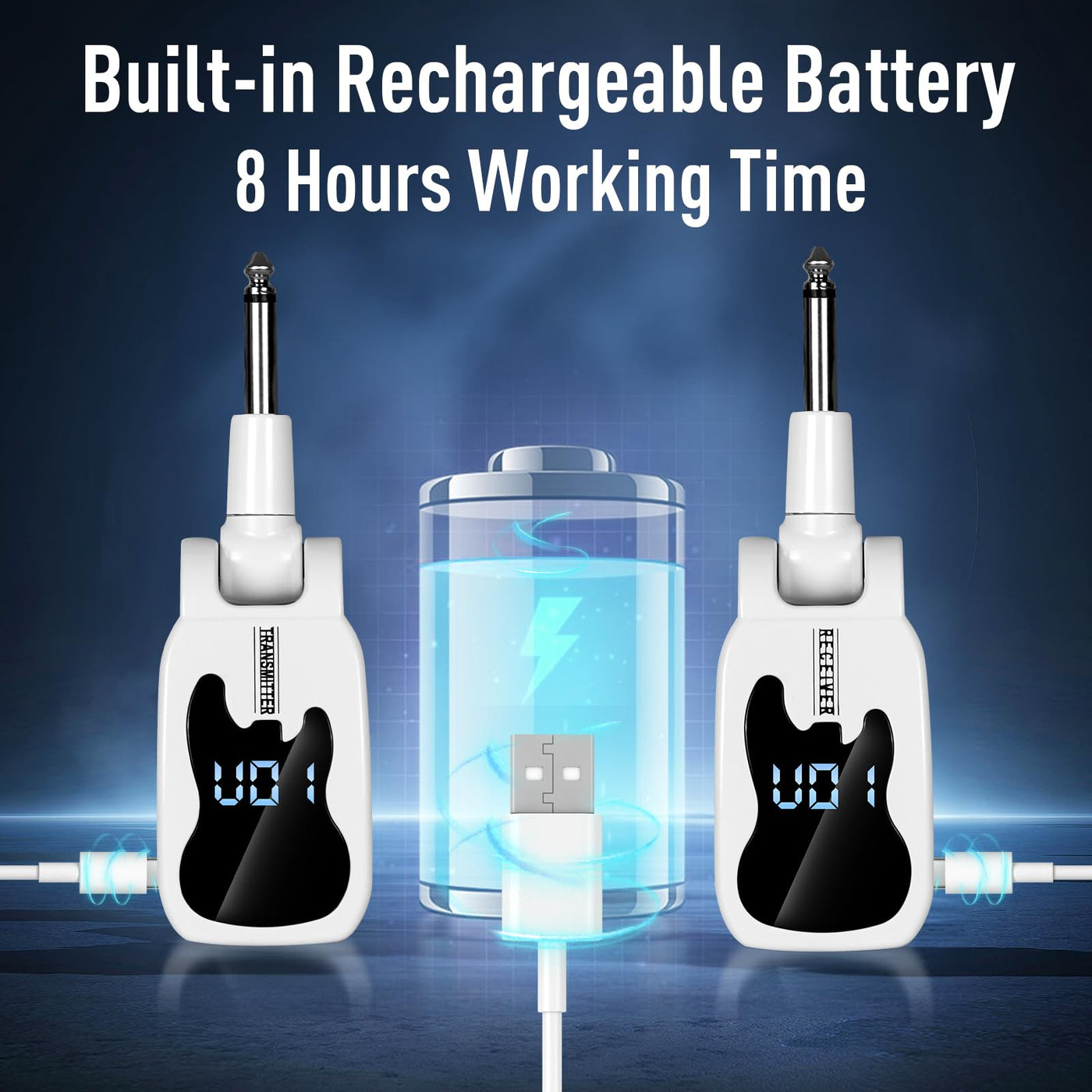 Devilclaw Wireless Guitar System With 16 Adjustable Frequencies, Rechargeable Wireless Guitar Transmitter Receiver For Guitar Bass Electric Instruments