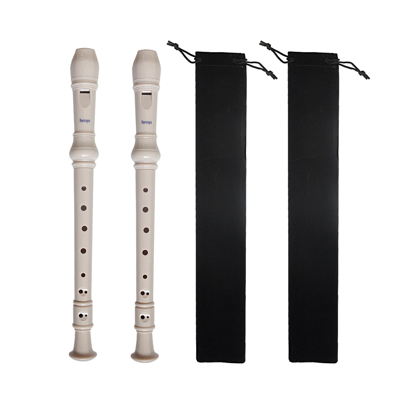 Farcaya 2-Piece Soprano Recorder Instrument for Beginners German Style C Key 8 Hole Descant with Clean Rods 2 Storage Cases (Whi